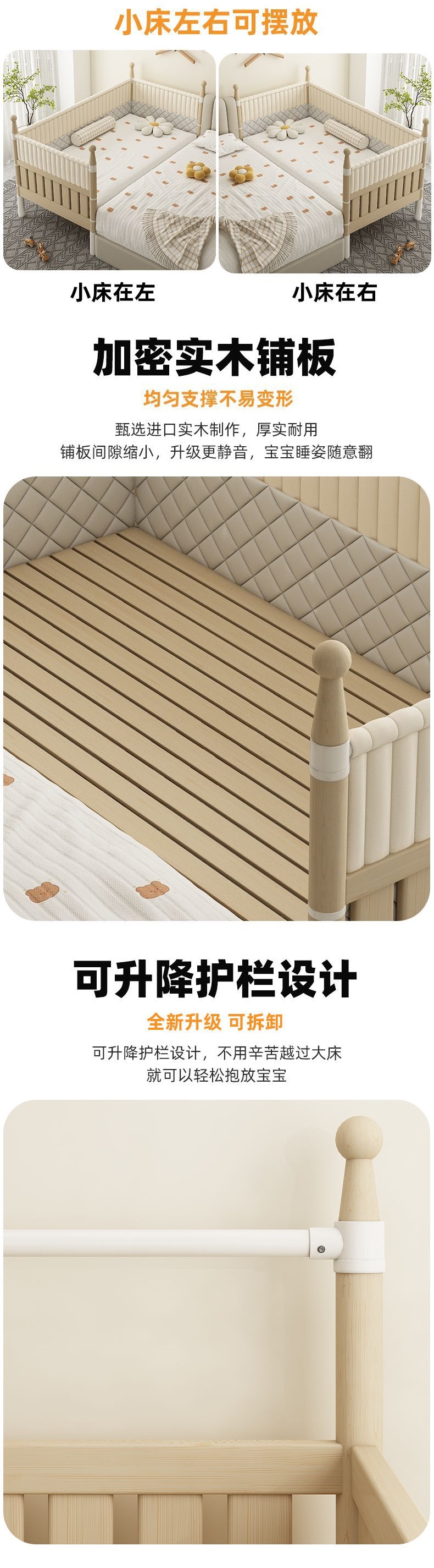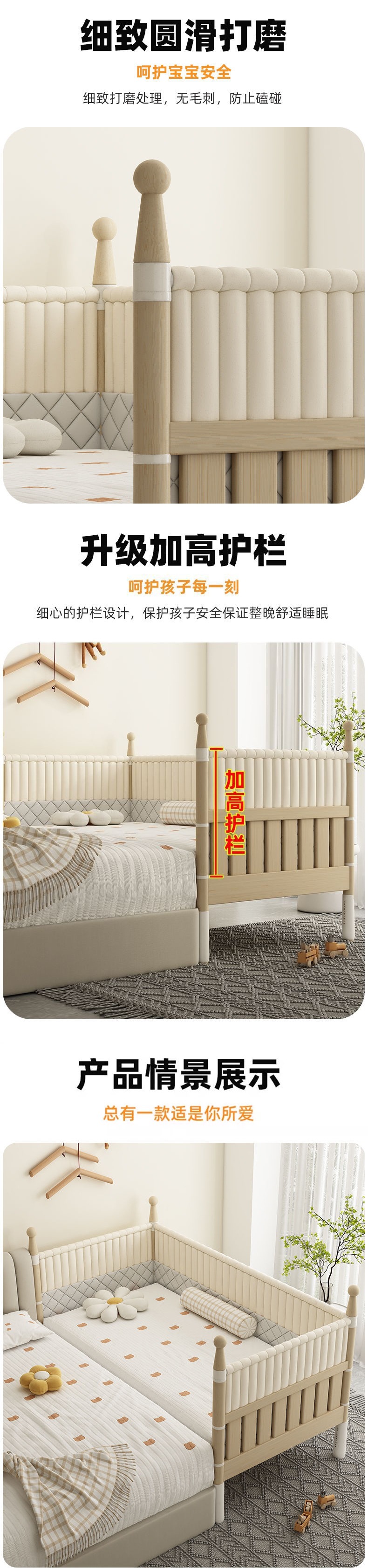 단단한 나무 접합 침대 어린이 넓은 침대 침실 큰 침대와 가드 레일 신생아 침대 아기 가드 레일