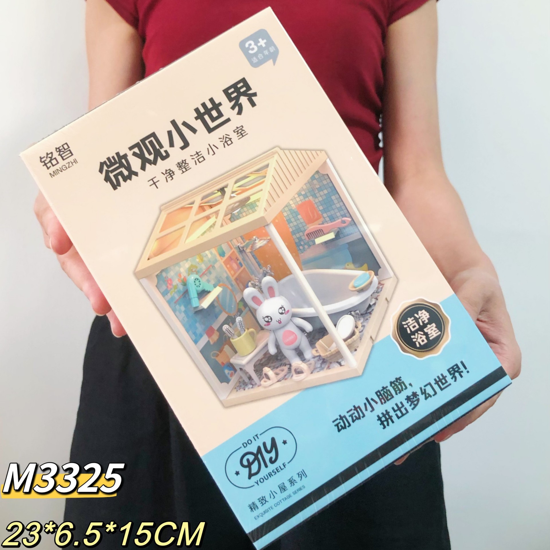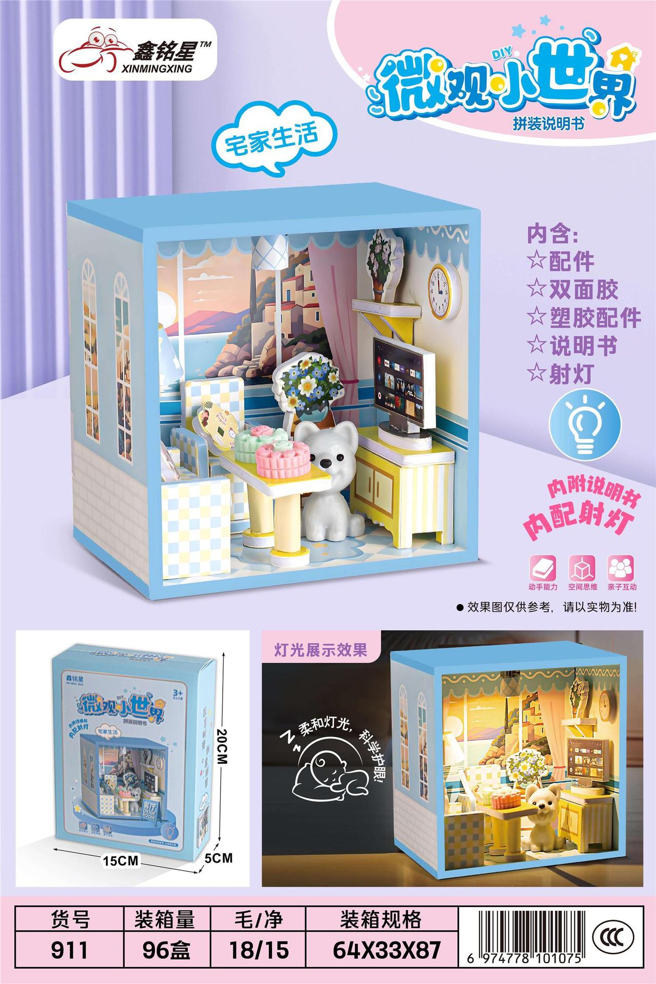 새로운 마이크로 스몰 월드 diy 캐빈 램프 침실 연구 욕실 빌딩 블록 조립 수제 모델 하우스 장난감