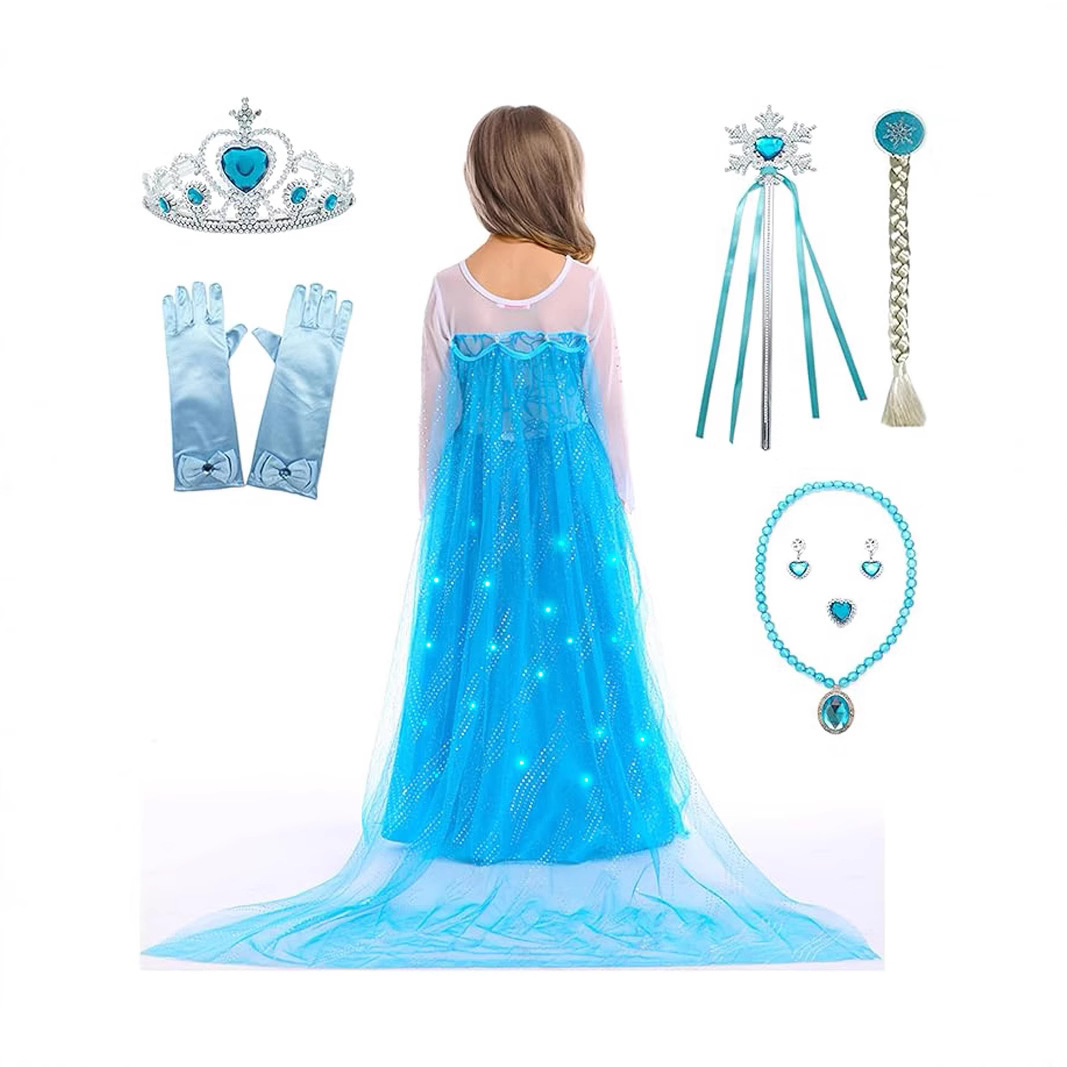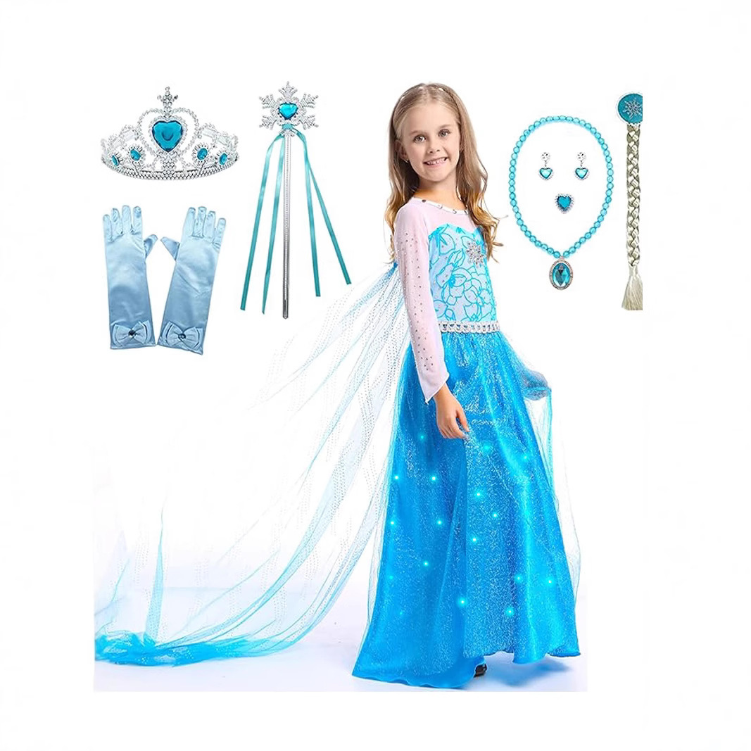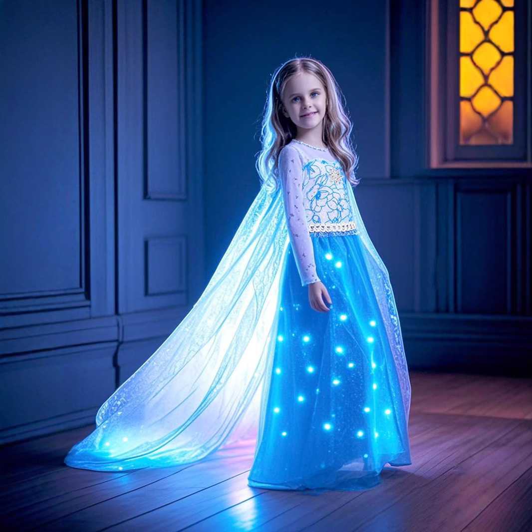 겨울왕국 엘사 공주 드레스 소녀 빛나는 거즈 드레스 새로운 파란색 긴팔 거즈 드레스 공연 의상