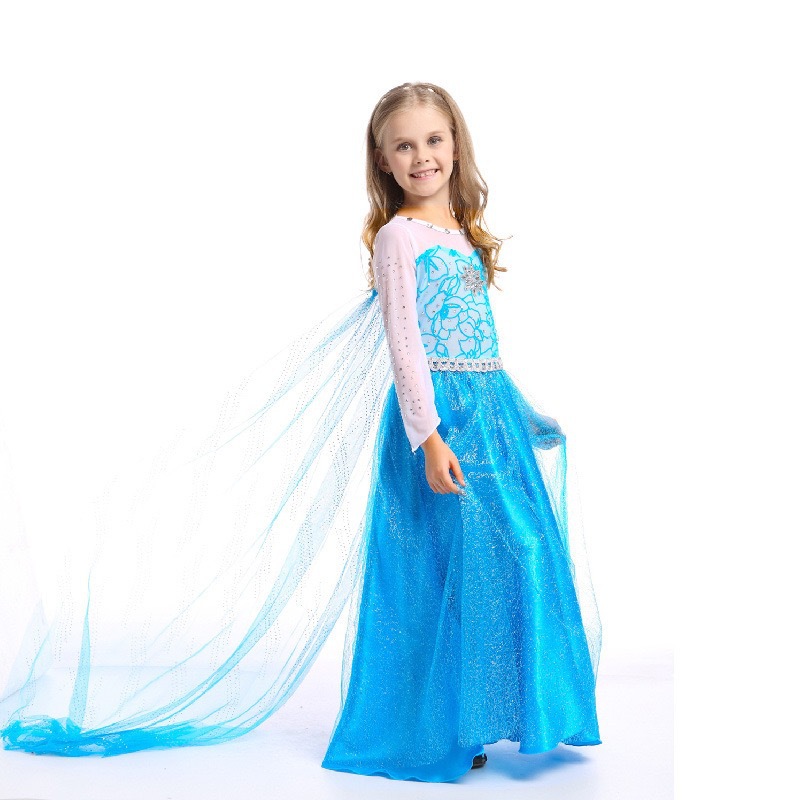 겨울왕국 엘사 공주 드레스 소녀 빛나는 거즈 드레스 새로운 파란색 긴팔 거즈 드레스 공연 의상스토어 가기
