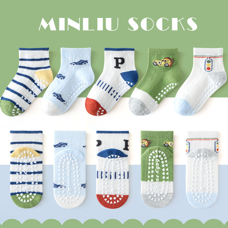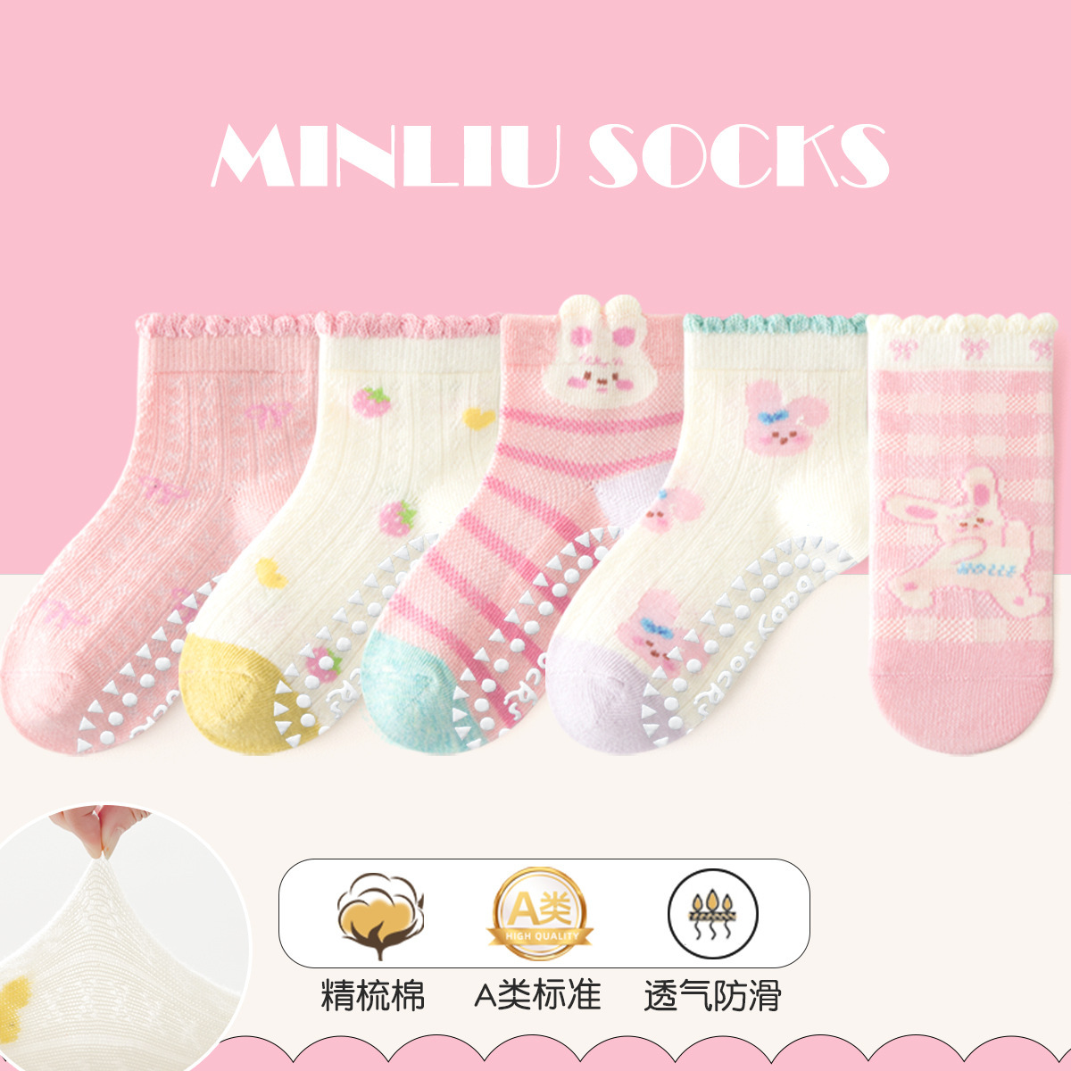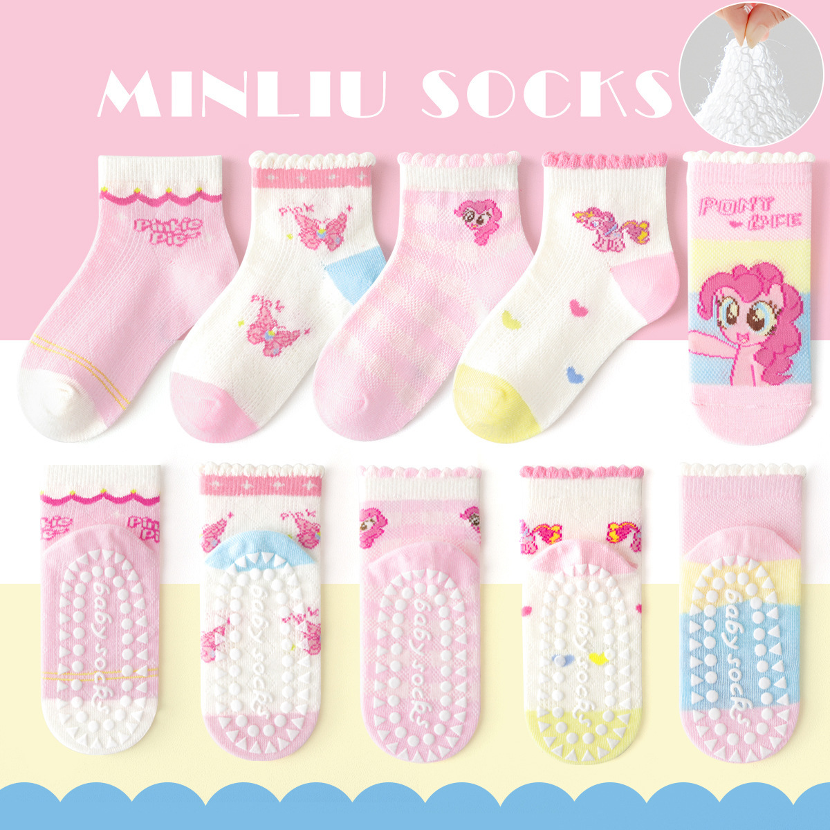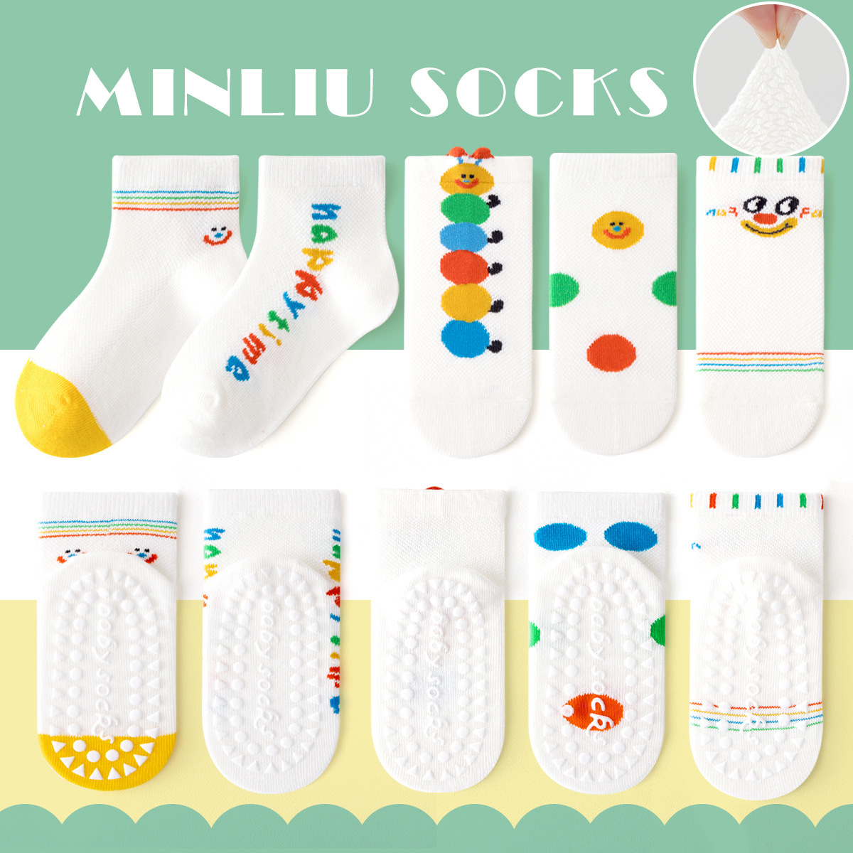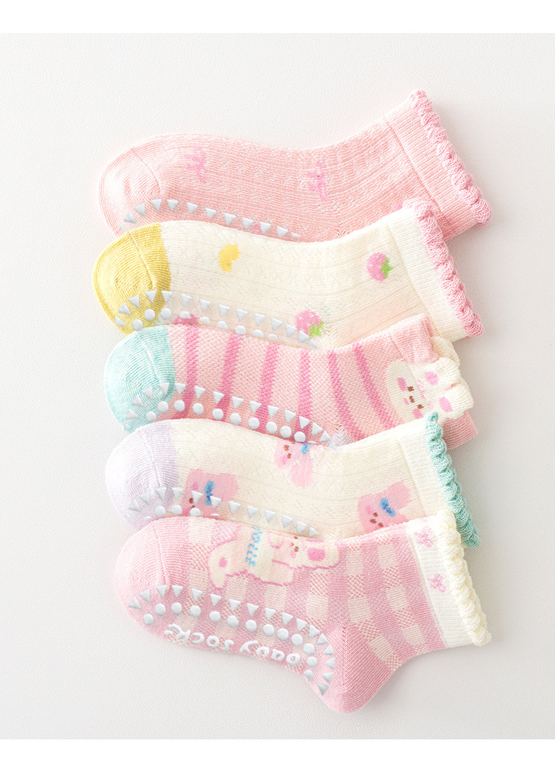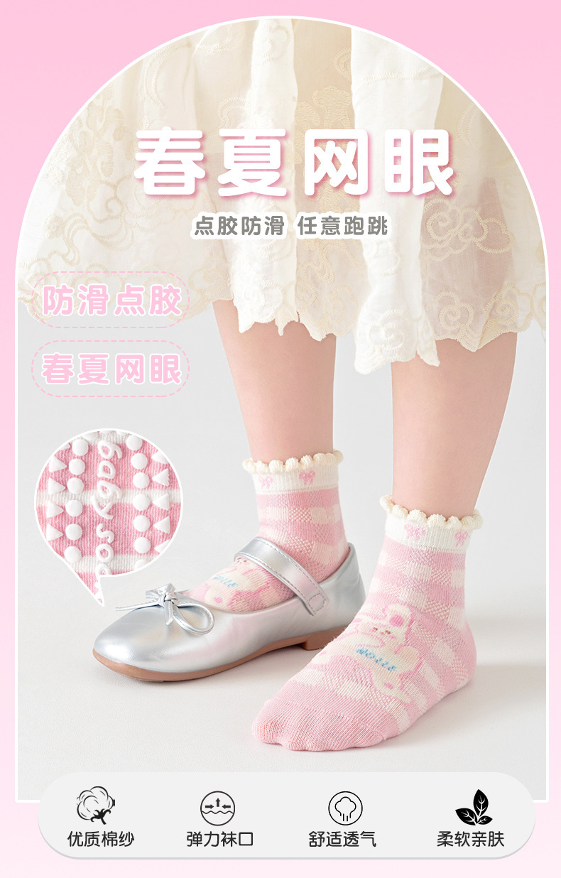미끄럼 방지 바닥 양말 클래스 A 소녀 양말 봄과 여름 얇은 어린이 양말 통기성 실내 메쉬 만화 짧은 양말
