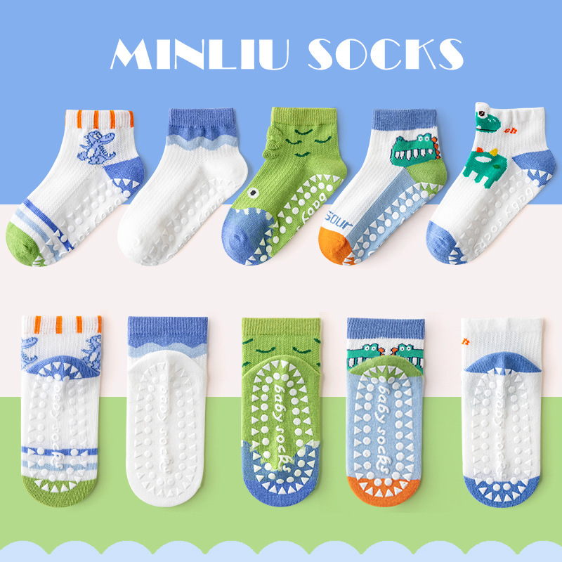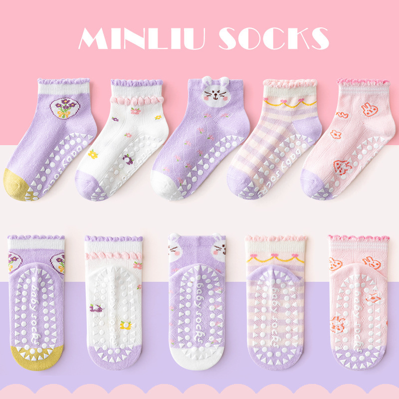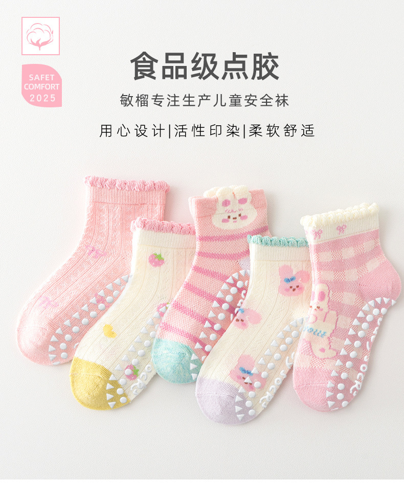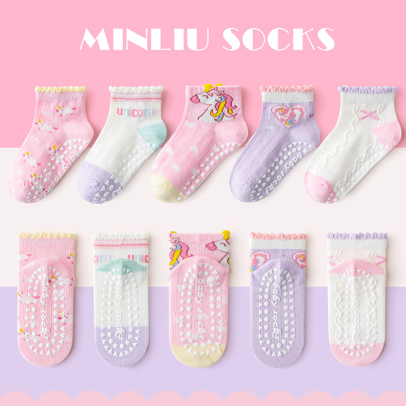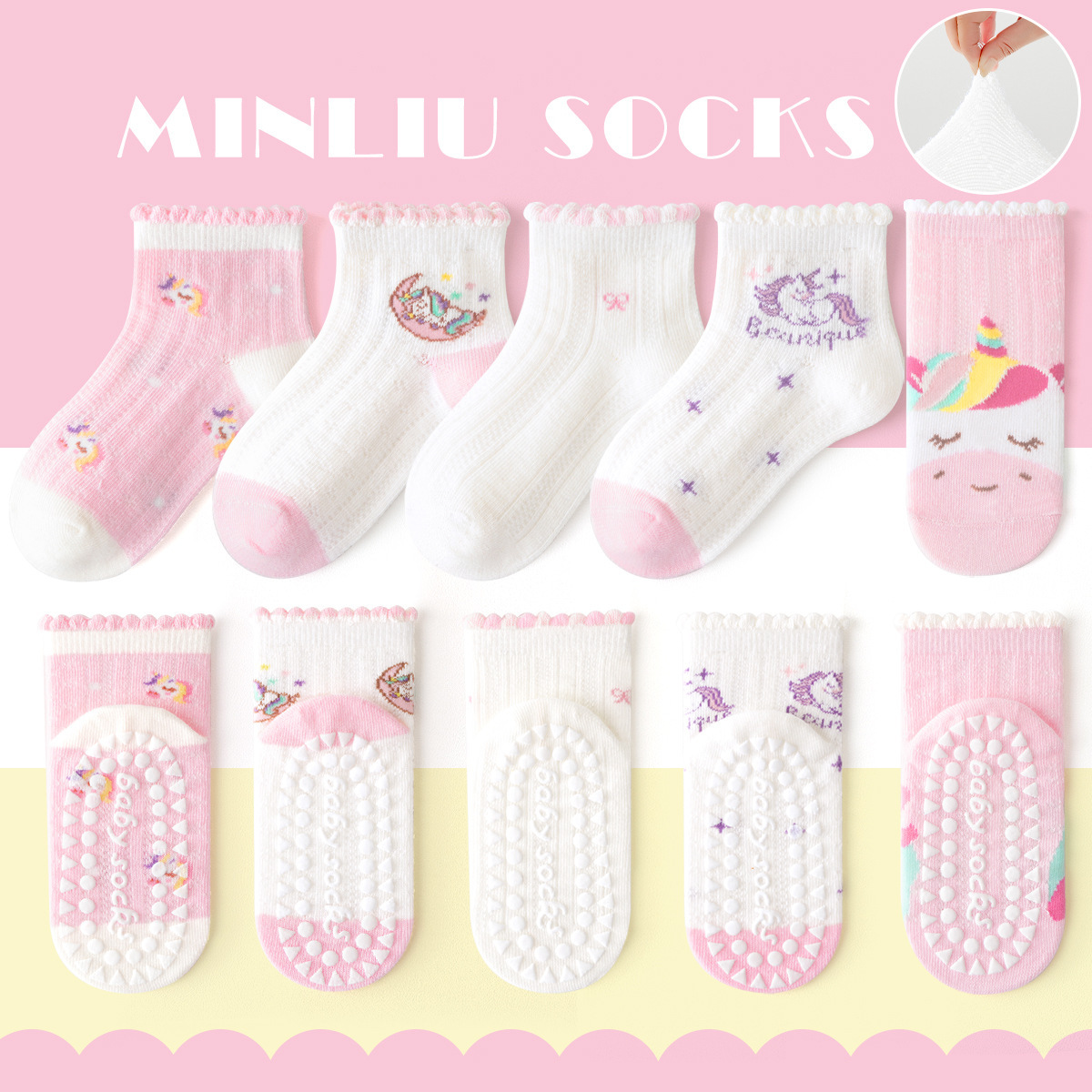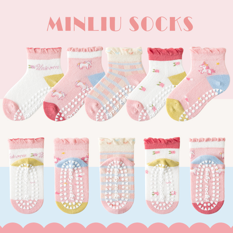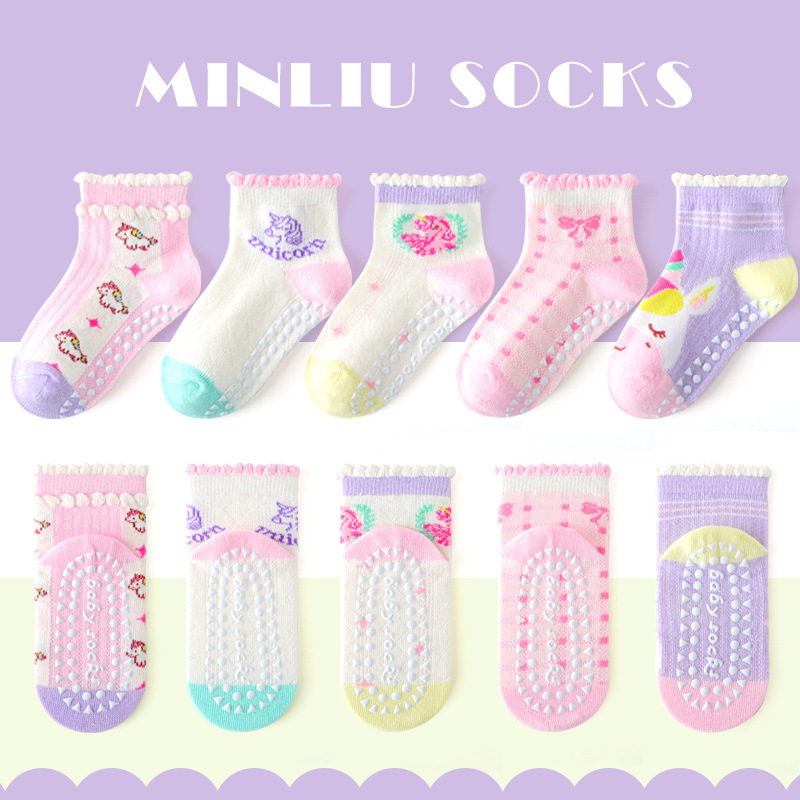 미끄럼 방지 바닥 양말 클래스 A 소녀 양말 봄과 여름 얇은 어린이 양말 통기성 실내 메쉬 만화 짧은 양말