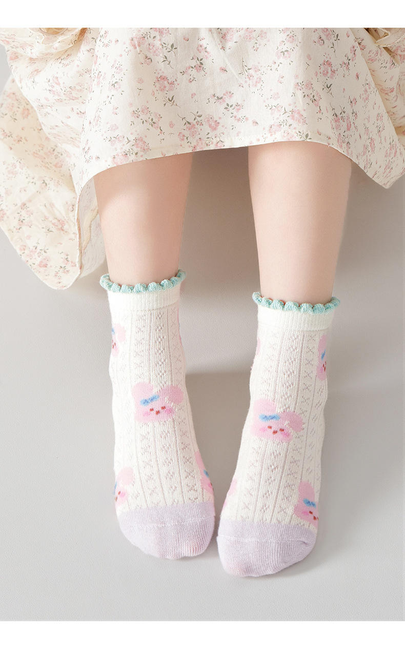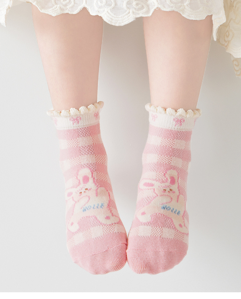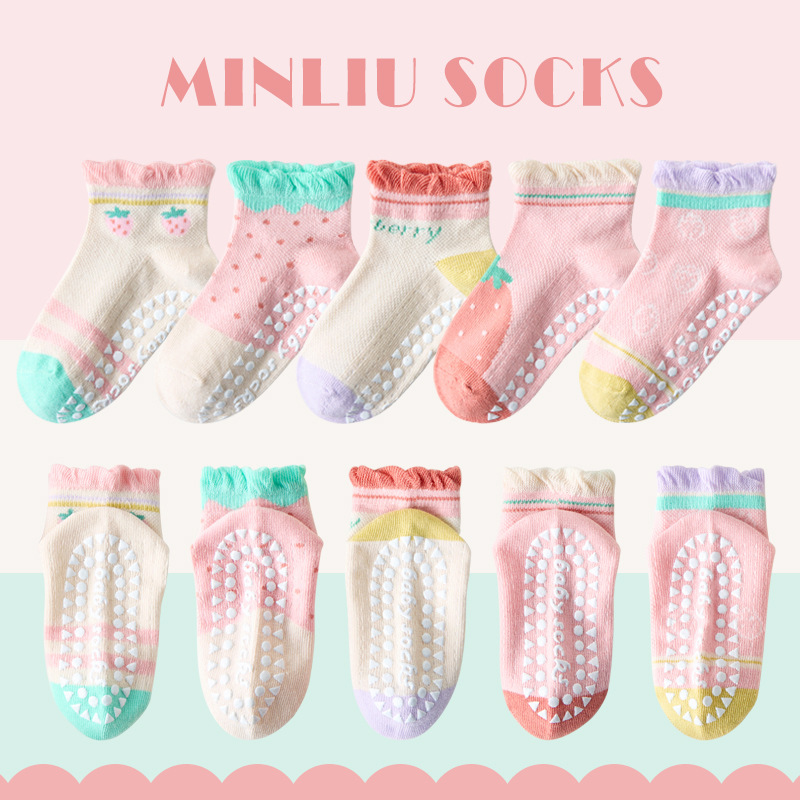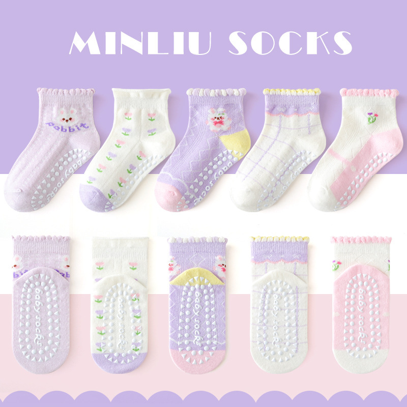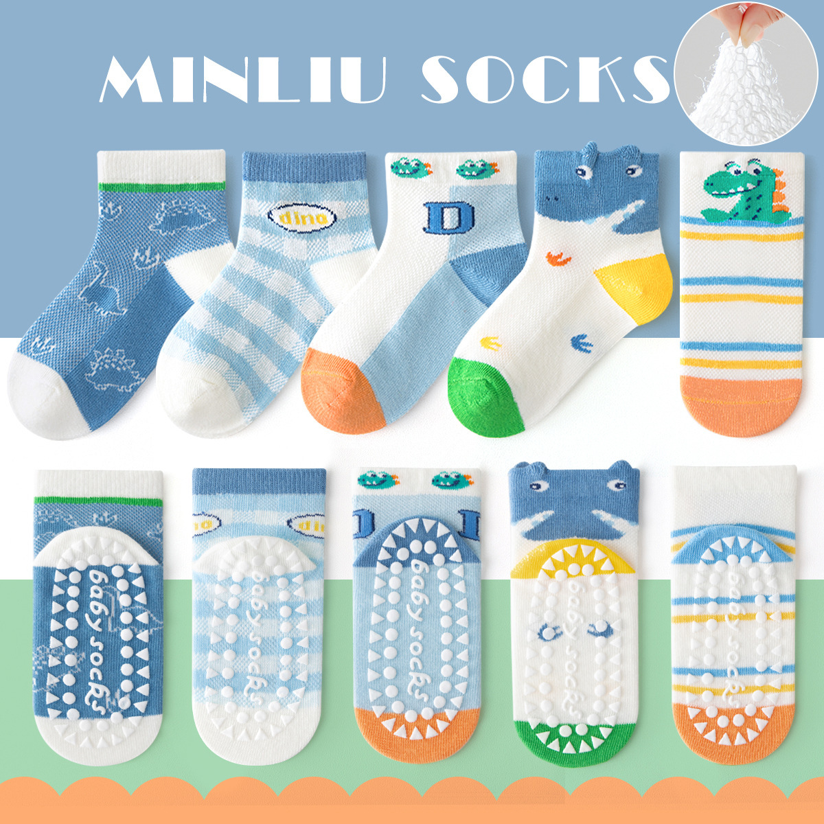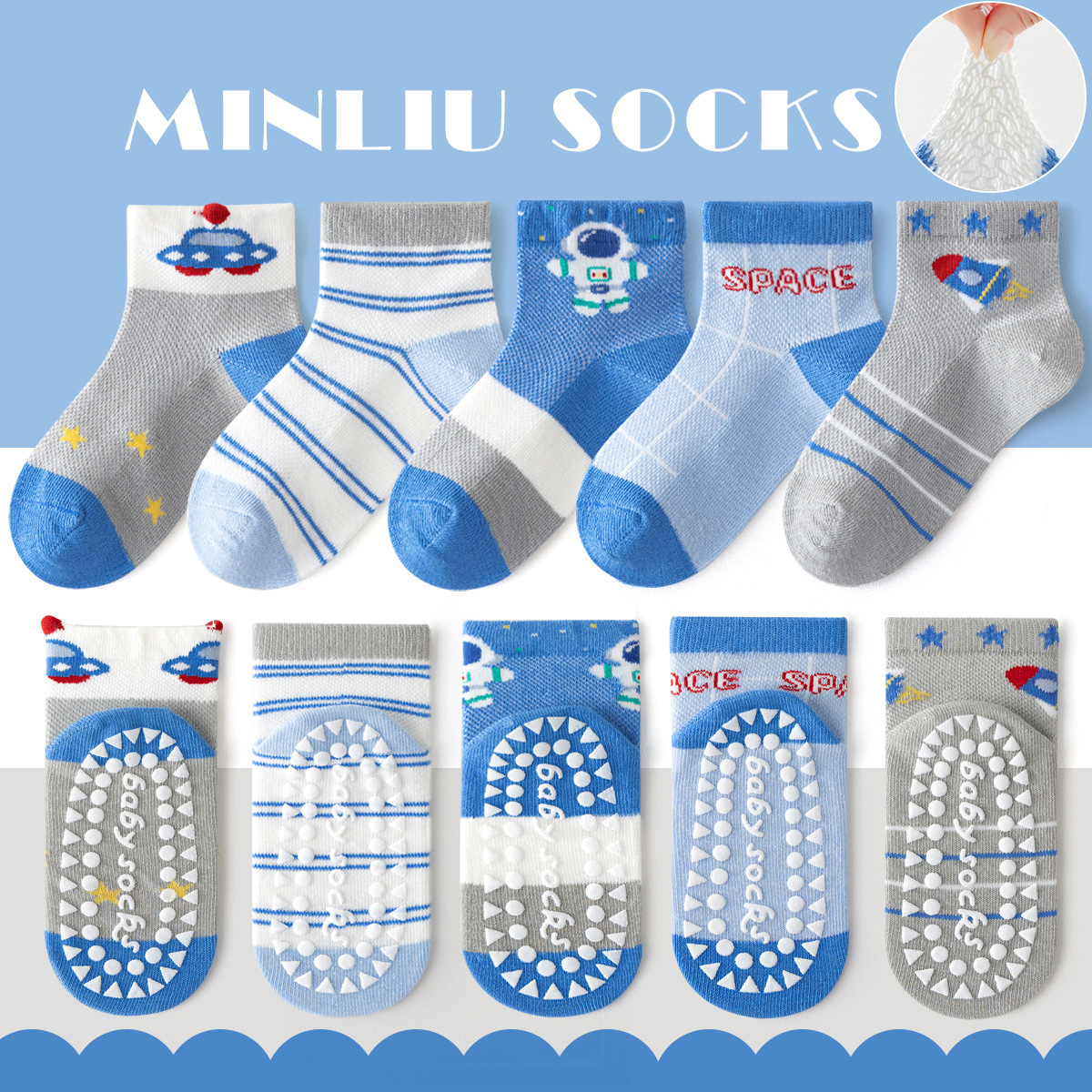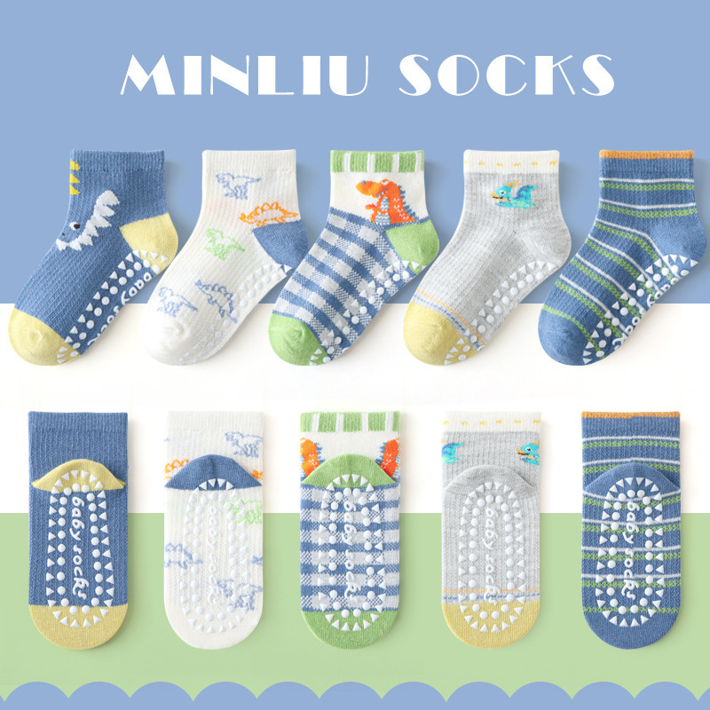 미끄럼 방지 바닥 양말 클래스 A 소녀 양말 봄과 여름 얇은 어린이 양말 통기성 실내 메쉬 만화 짧은 양말
