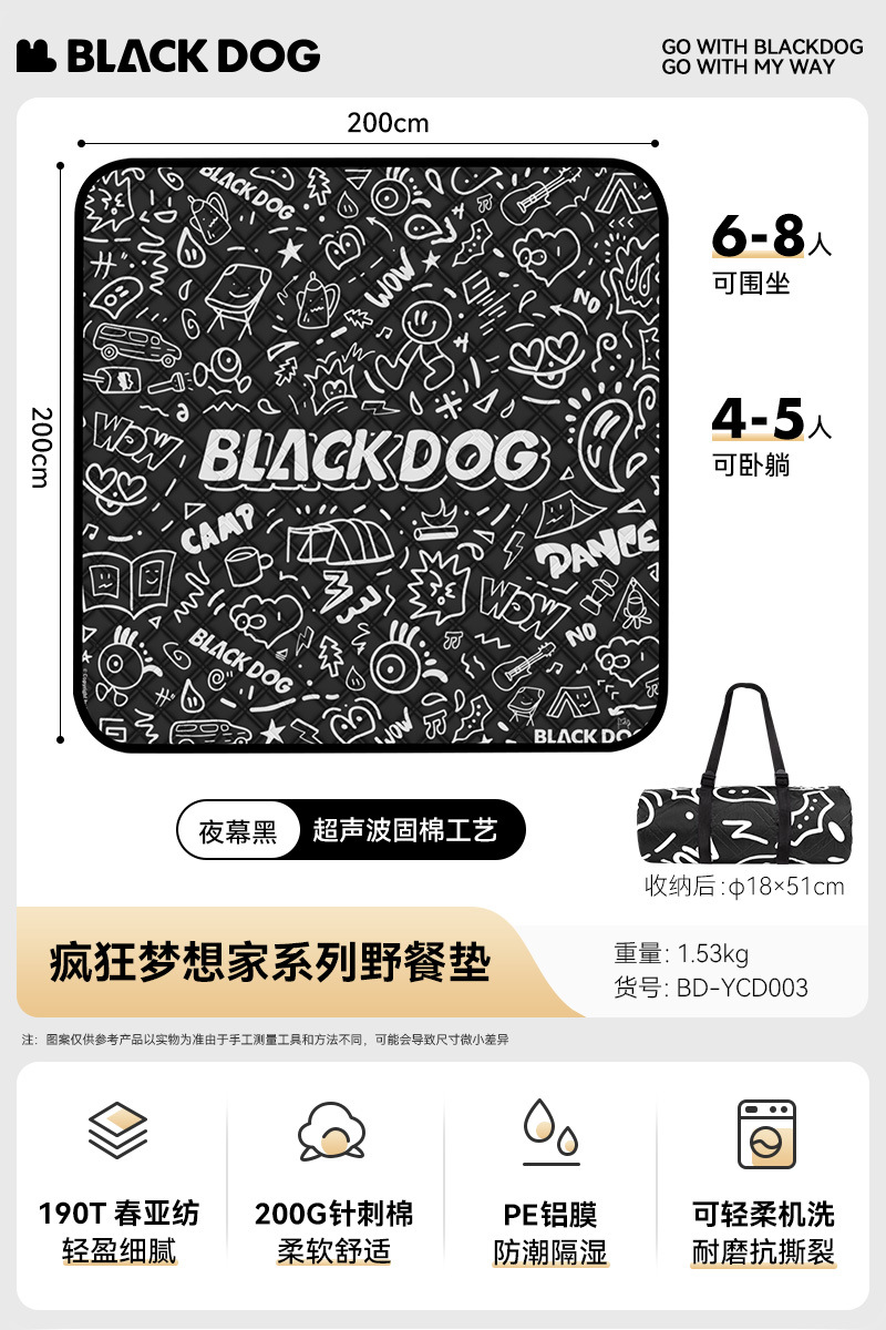 Blackdog 야외 피크닉 매트 캠핑 두꺼운 봄 나들이 매트 방습 매트 공원 Crazy Dreamer 시리즈