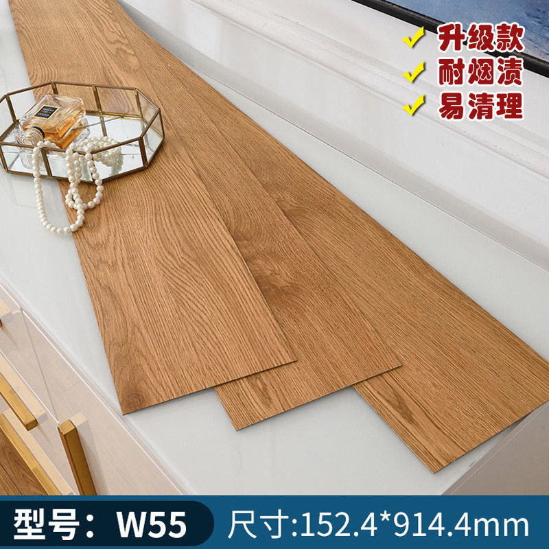 PVC 자체 접착 바닥 가죽 스티커 두꺼운 플라스틱 가정용 자체 접착 바닥 직선 바닥 접착제 모조 나뭇결 매트 공장