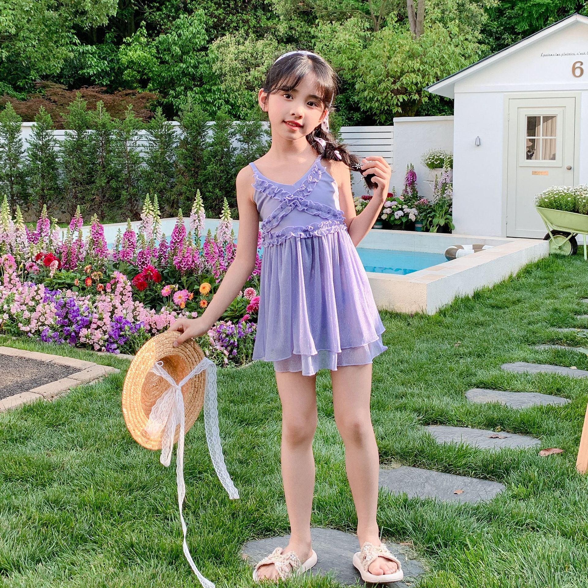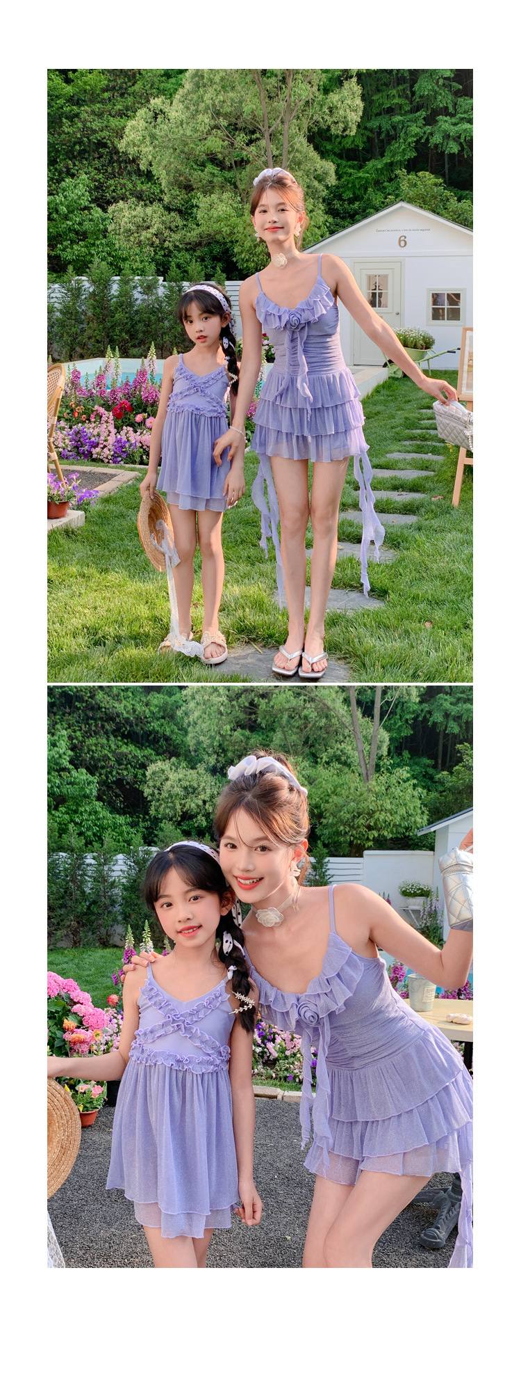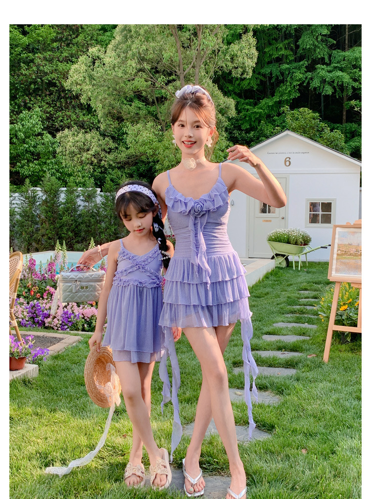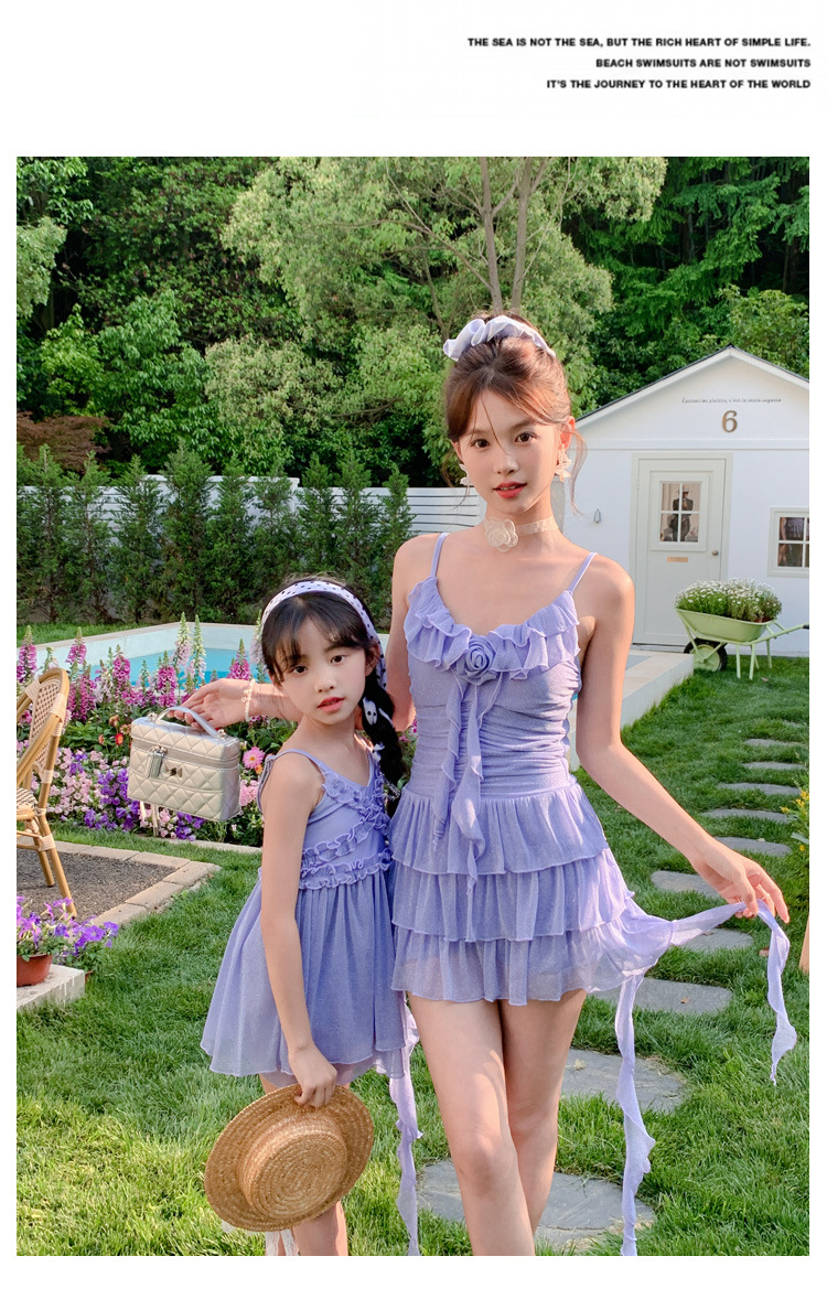 부모-자식 수영복, 엄마와 딸의 새로운 원피스 스커트 스타일의 살을 커버하는 수영복, 중대형 어린이를 위한 귀엽고 세련된 여아 수영복스토어 가기