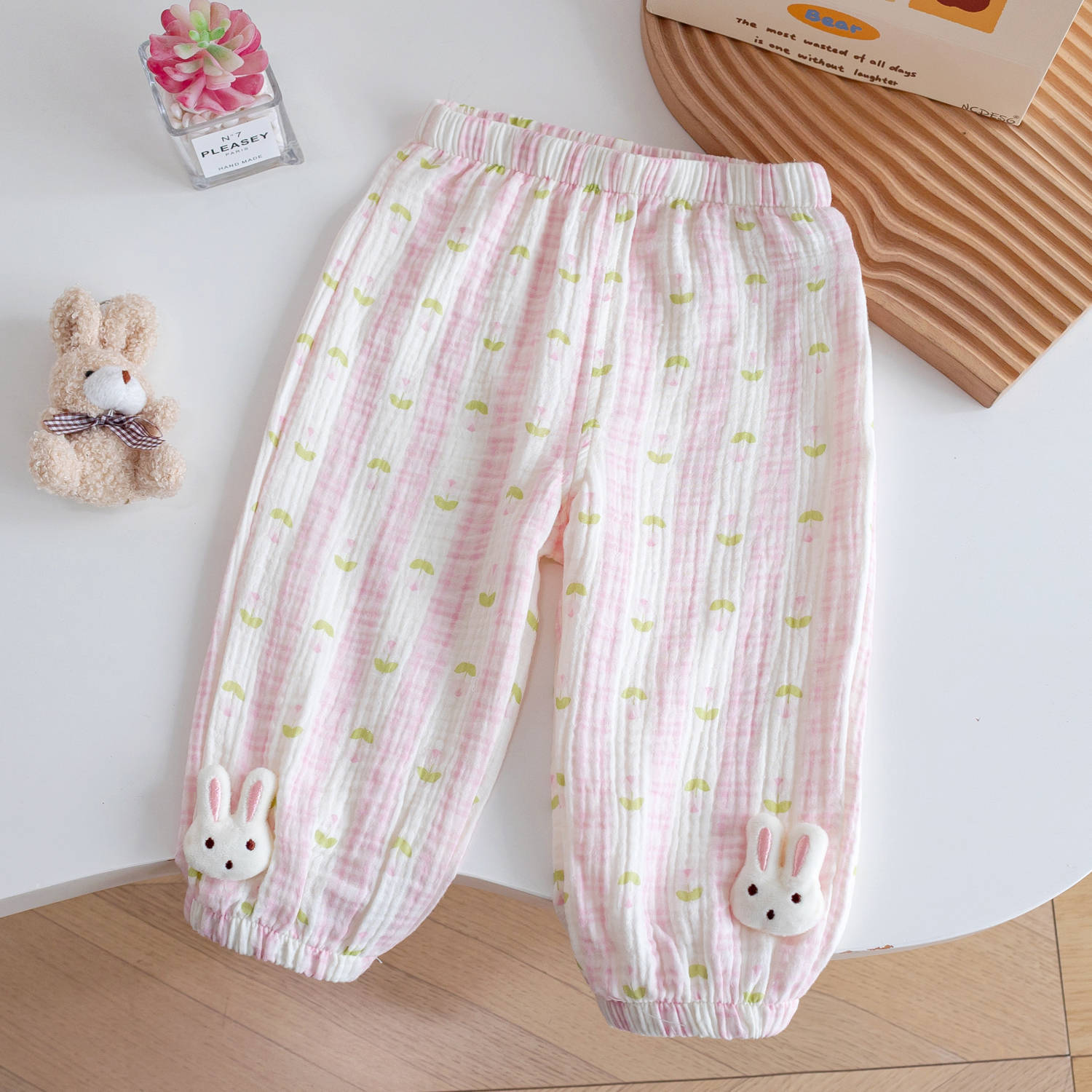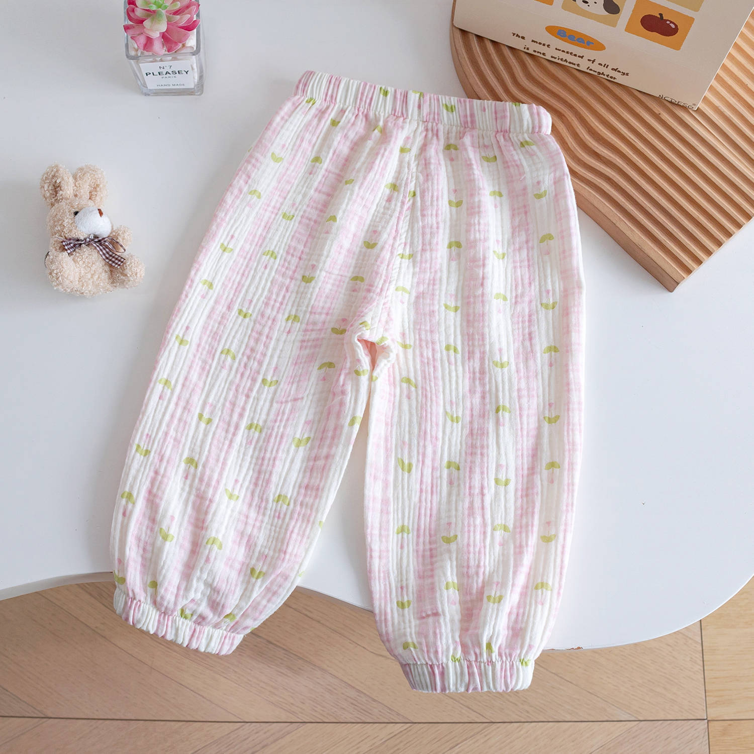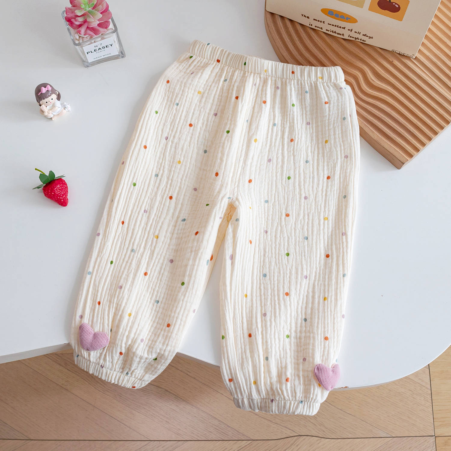 아동용 면 거즈 모기 방지 바지, 세련된 꽃무늬 딸기 프린트 꽃무늬 면 에어컨 바지, 여름 레깅스, 여아용 부드러운 바지스토어 가기