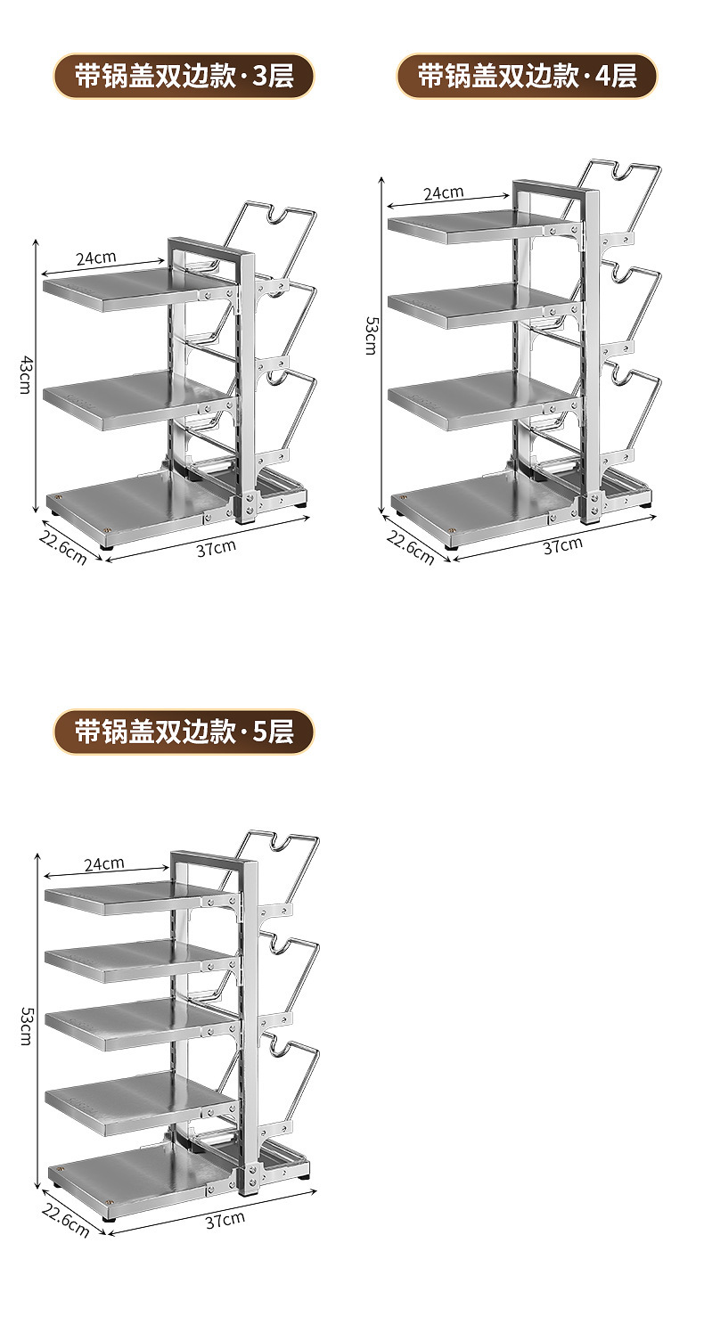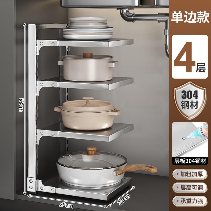 제조업체는 주방 스테인레스 스틸 냄비 랙 다층 조리대 조절 가능한 냄비 보관 랙 캐비닛 슬롯 보관을 공급합니다.스토어 가기