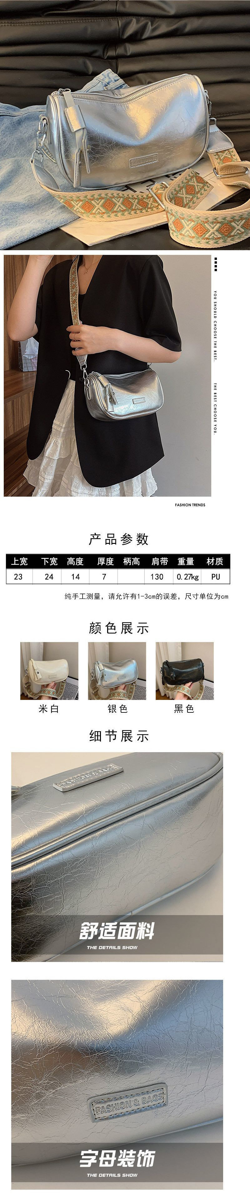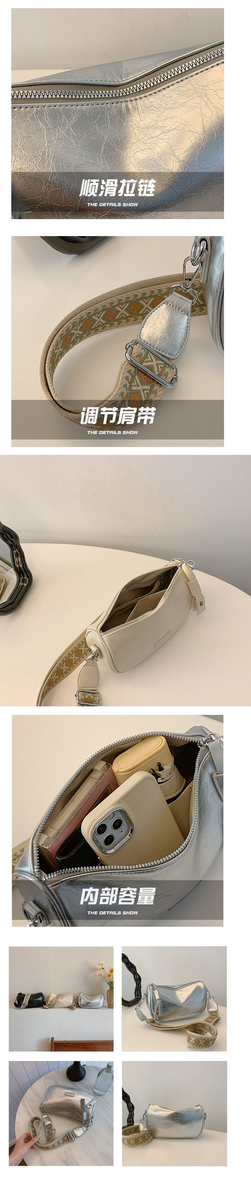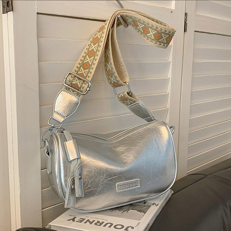 高级银色小包包女2024新款小众时尚单肩斜挎包百搭宽肩带枕头包潮스토어 가기