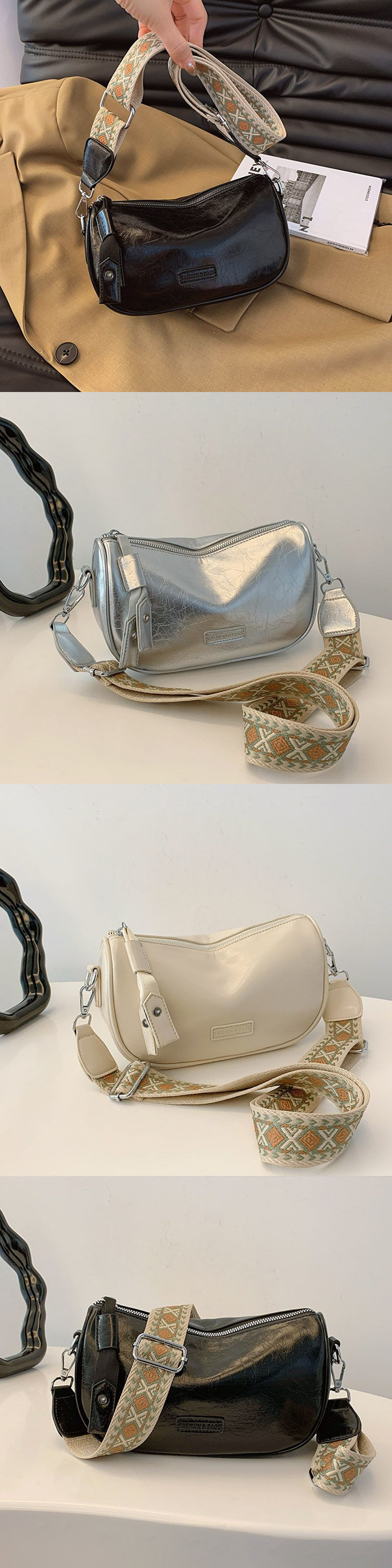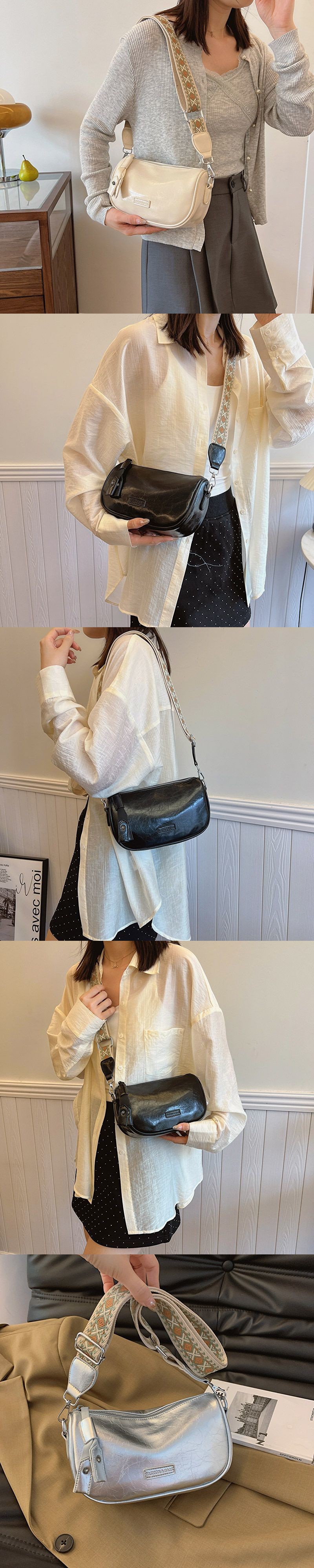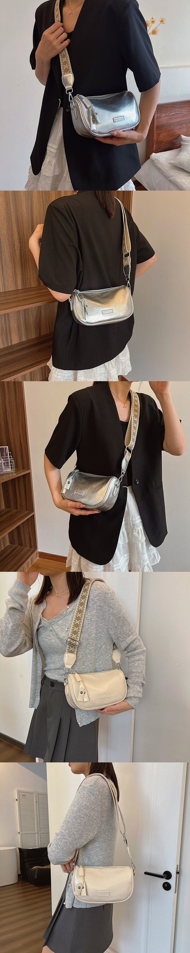 高级银色小包包女2024新款小众时尚单肩斜挎包百搭宽肩带枕头包潮스토어 가기
