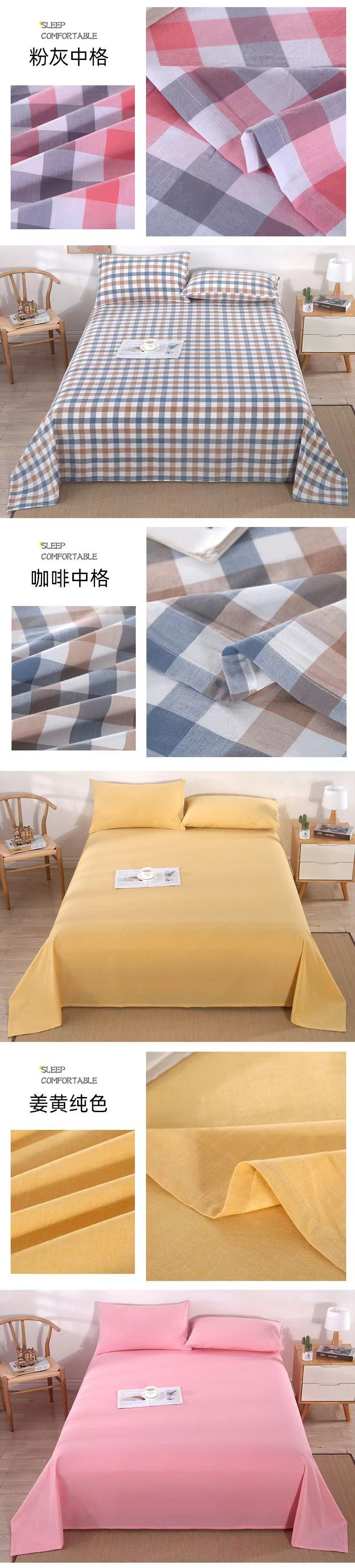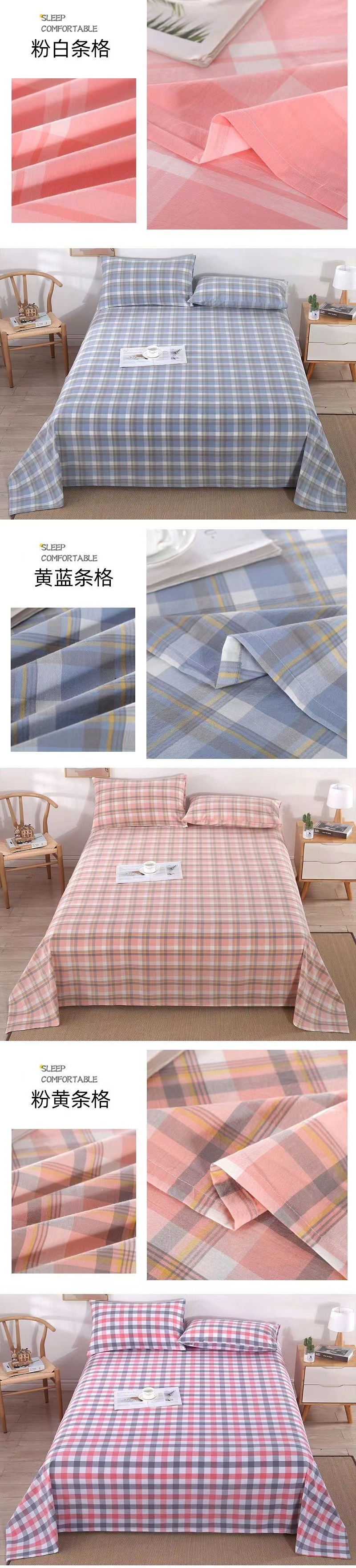 면 오래 된 거친 천 침대 시트 단일 조각 두꺼운 암호화 100 모든 면 천 기숙사 면 린넨 격자 무늬 여름 통기성스토어 가기
