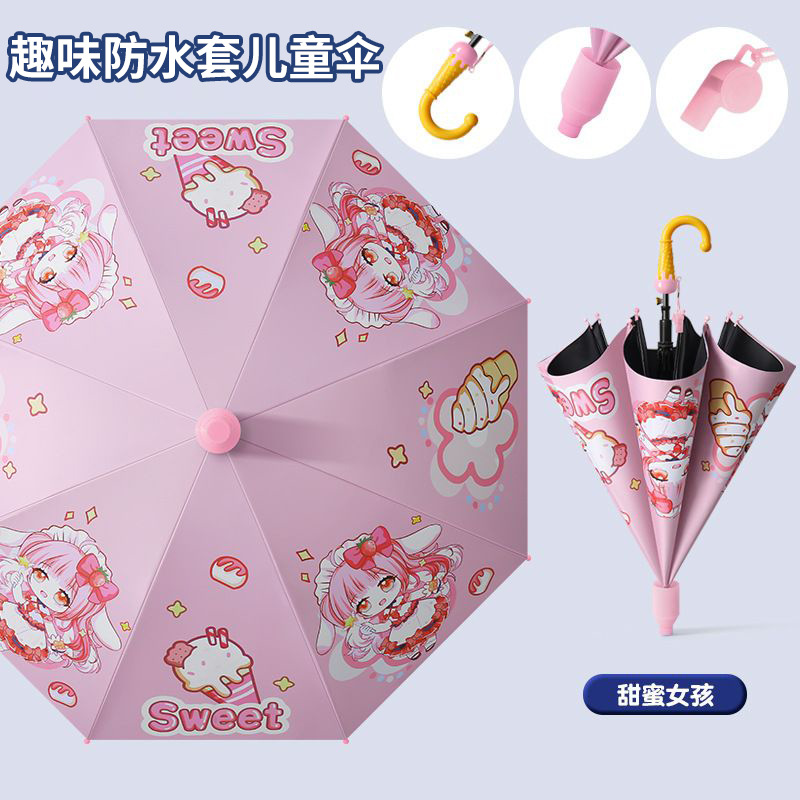자동 소녀 우산 만화 인쇄 긴 손잡이 방수 커버 어린이 우산 자동 우산 만화 만화 우산