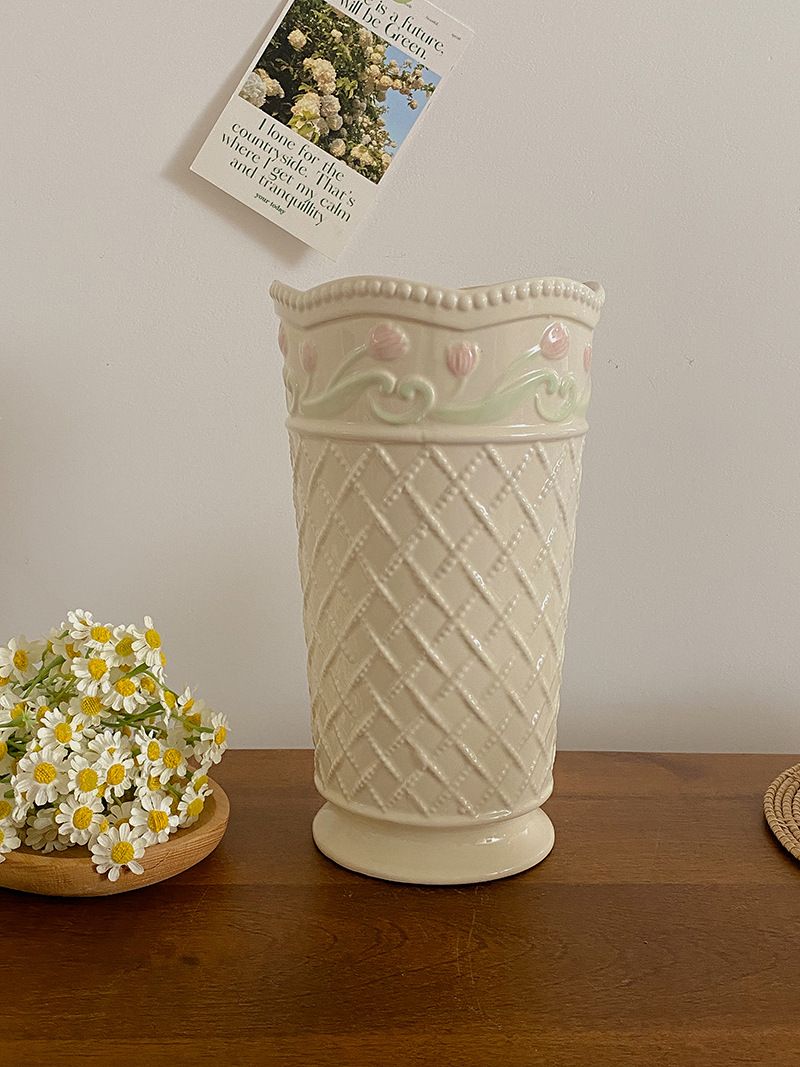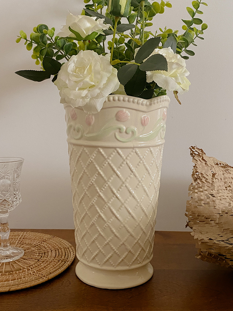 꽃 프랑스 복고풍 스트레이트 꽃병 감각 안락 예술 고급 꽃 예술 세라믹 외부 단일 시뮬레이션 꽃 거실 장식품