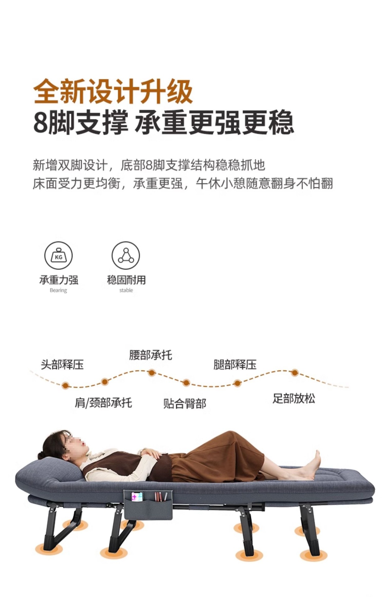 성인 점심 시간 접이식 침대 사무실 싱글 안락 의자 간단한 휴대용 병원 동반자 침대 캠프 낮잠 T&
