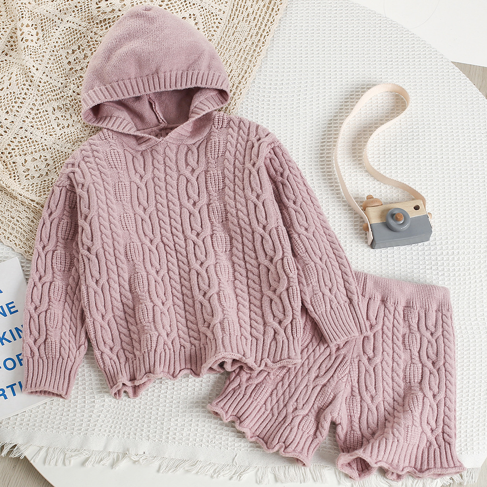 여아 스웨터 세트 봄과 가을 새로운 한국 스타일 서양식 후드 스웨터 탑 반바지 세련된 서양식 투피스 세트