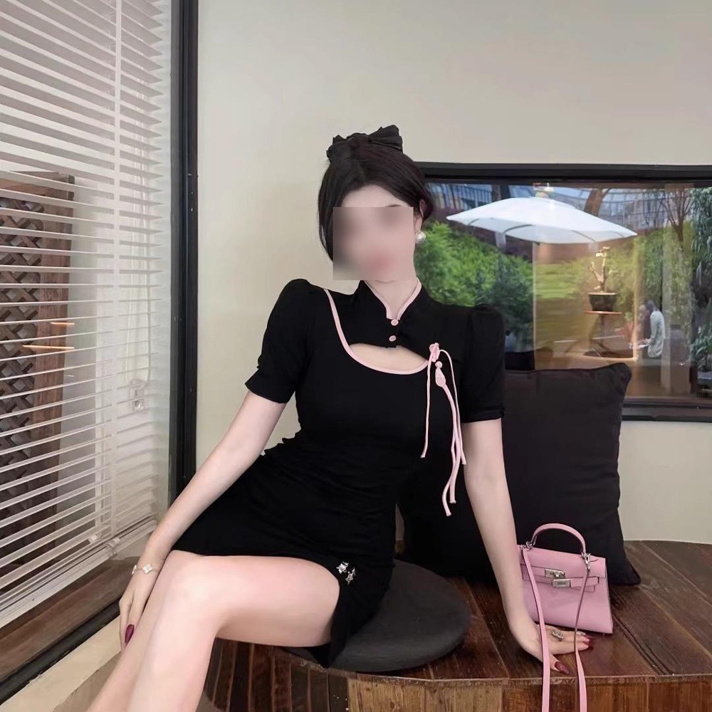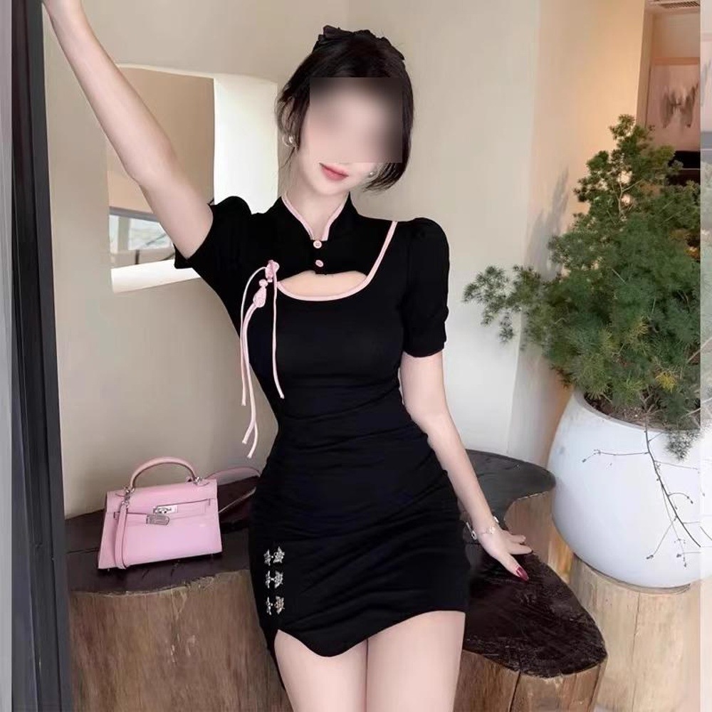 新中式国风改良旗袍小黑裙镂空小众高级感别致小众包臀连衣裙女夏스토어 가기