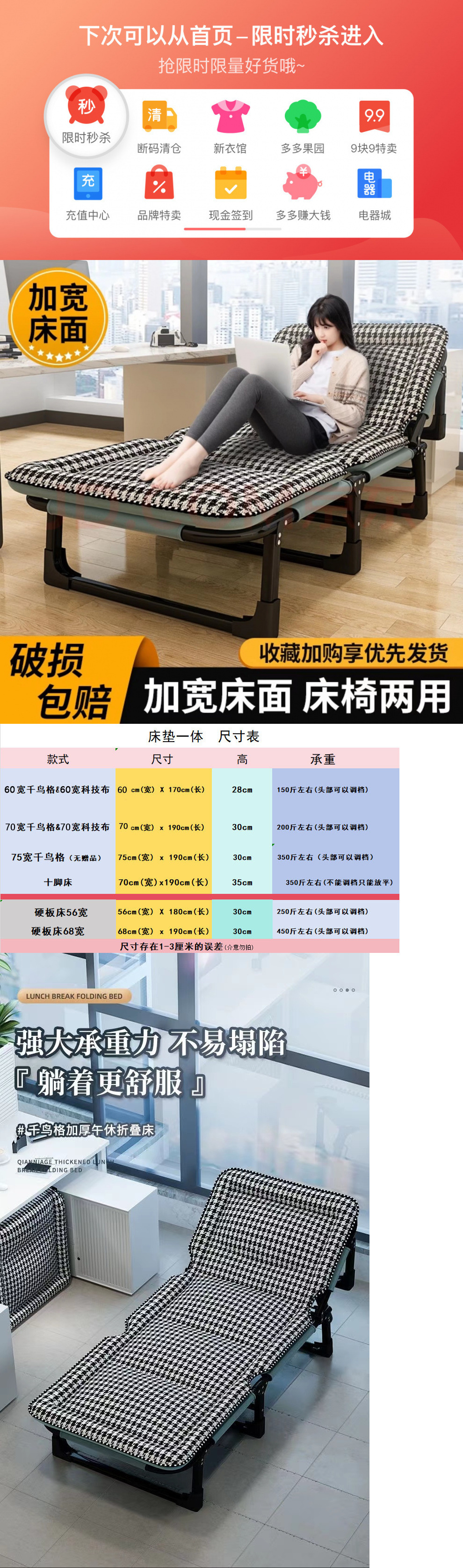 워시 프리 기술 천 두꺼운 접이식 침대 싱글 침대 사무실 강화 점심 식사 침대 휴대용 동반 침대 점심 휴식 아티팩트