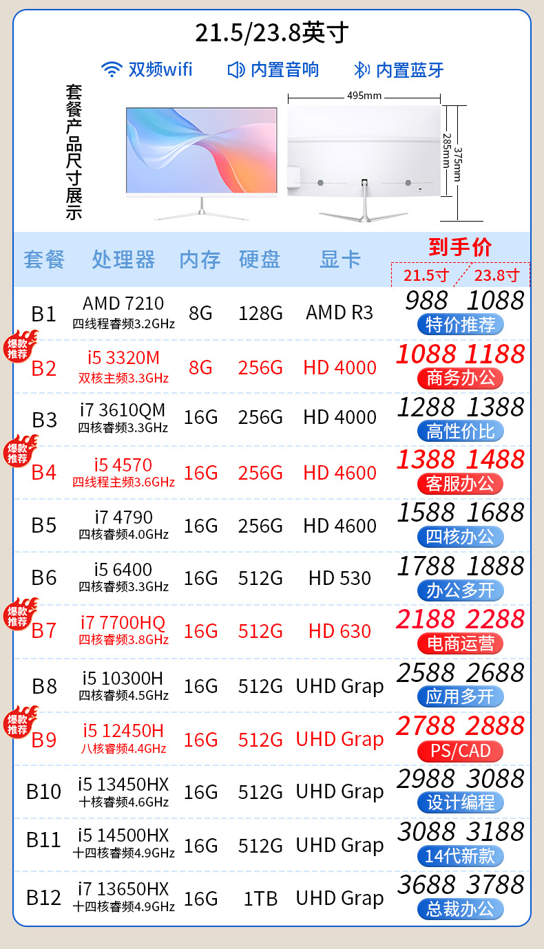 • B12 패키지 21.5inch /I7 13650HX/16G/1TB/WIFI
