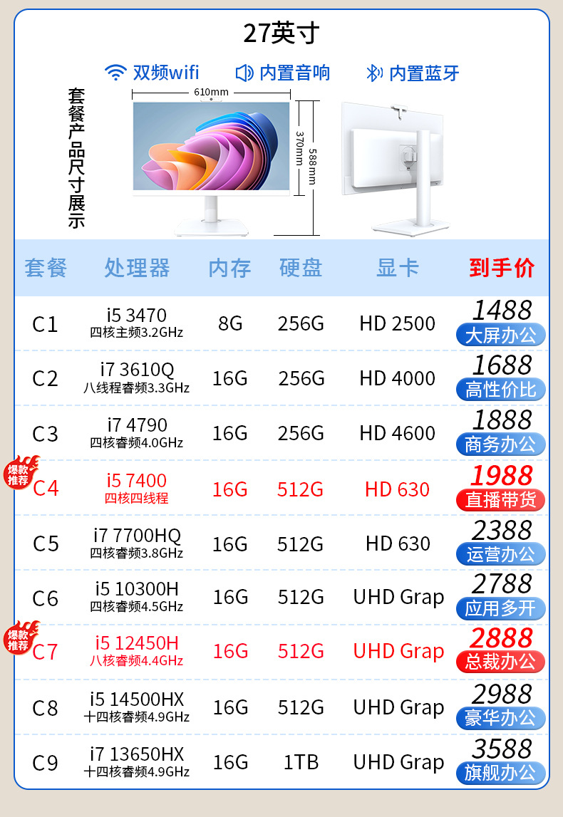 • C7 패키지 27inch /I5 12450H/16G/512G/WIFI