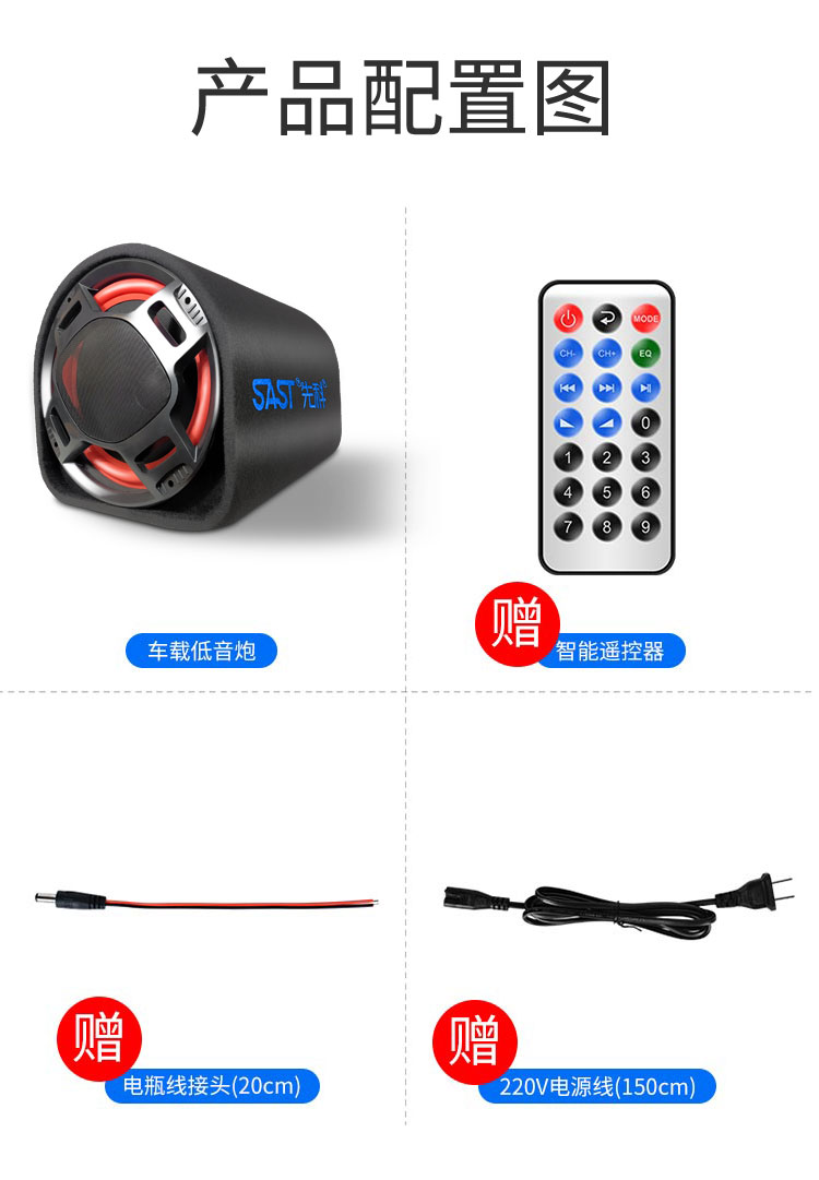 • 표준 구성 + U 디스크 + 시가 라이터 케이블 12inch 중량 초과 Bluetooth 서브우퍼
