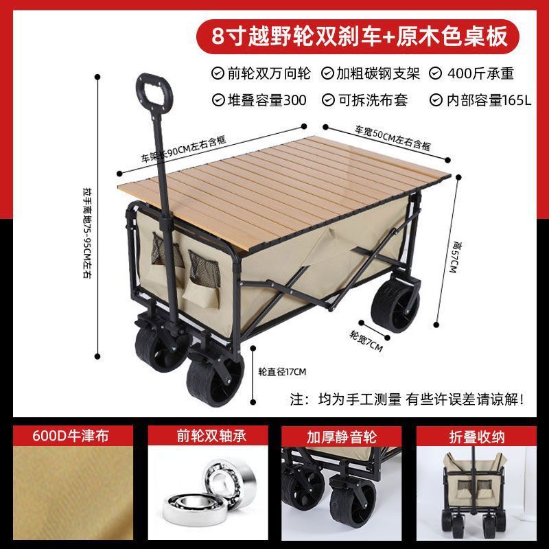 • 카키 [두꺼운 옥스포드 천] - 8inch 오프로드 휠 더블 브레이크 + 우드 컬러 테이블