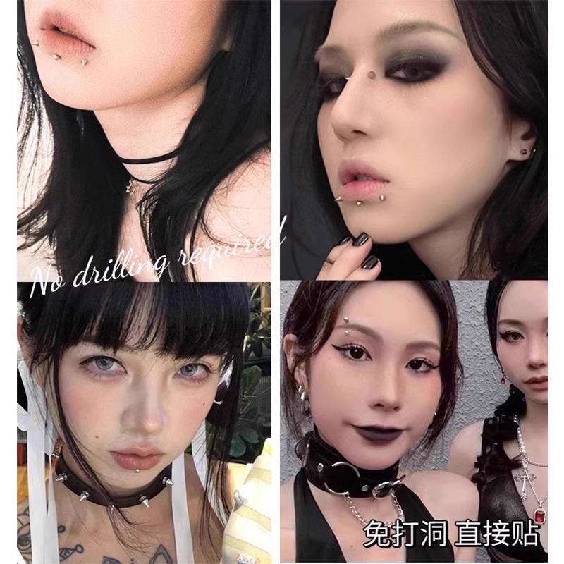 페이스 스티커가 있는 가짜 눈썹 스티커, 구멍 없는 립 스티커, 코 스티커, 실버 립 비즈, 구멍 없는 주얼리, 뮤직 페스티벌 다이아몬드 스티커스토어 가기