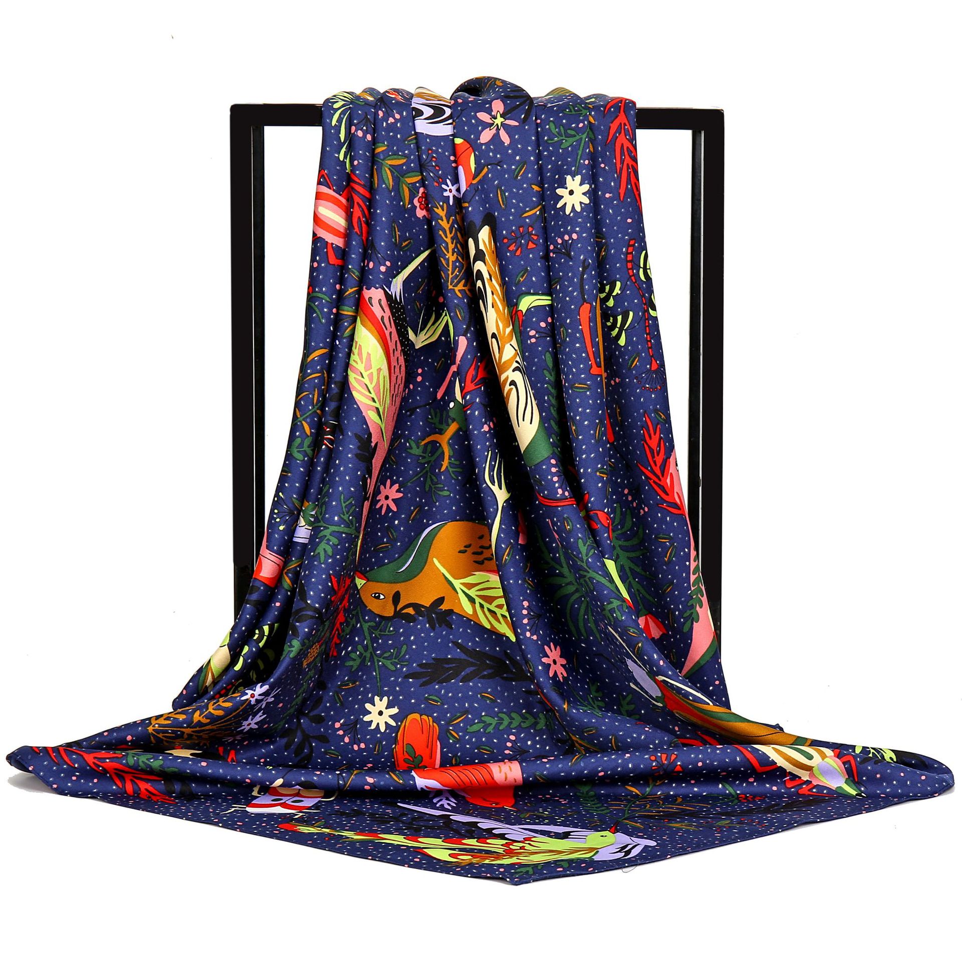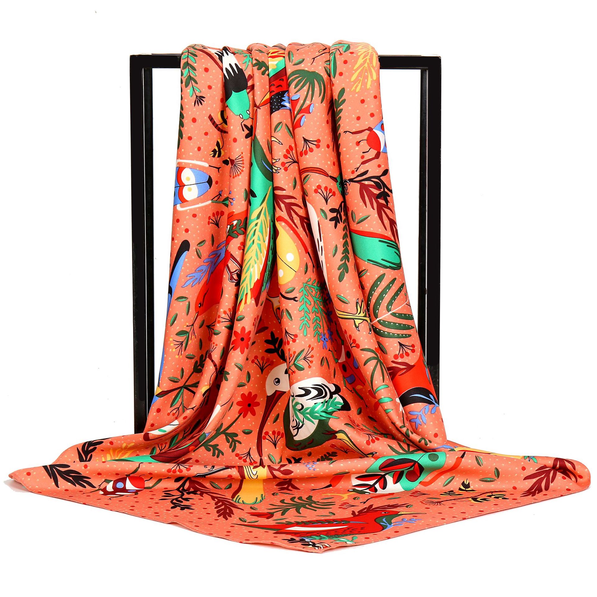 Gao Wo 패션 우아한 새 식물 꽃 트윌 인쇄 큰 광장 스카프 여성 스카프 머리띠 대외 무역