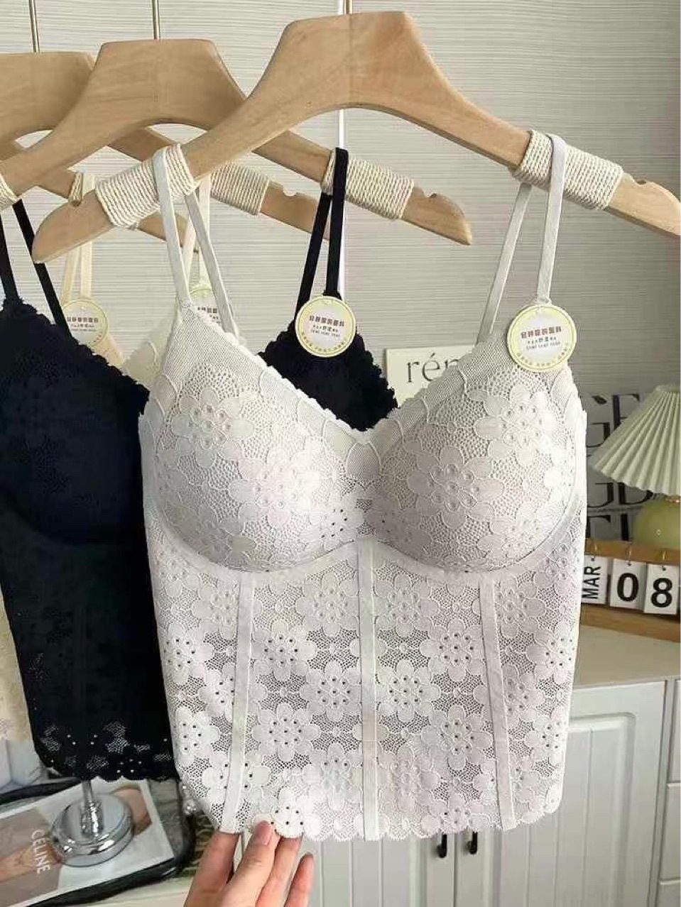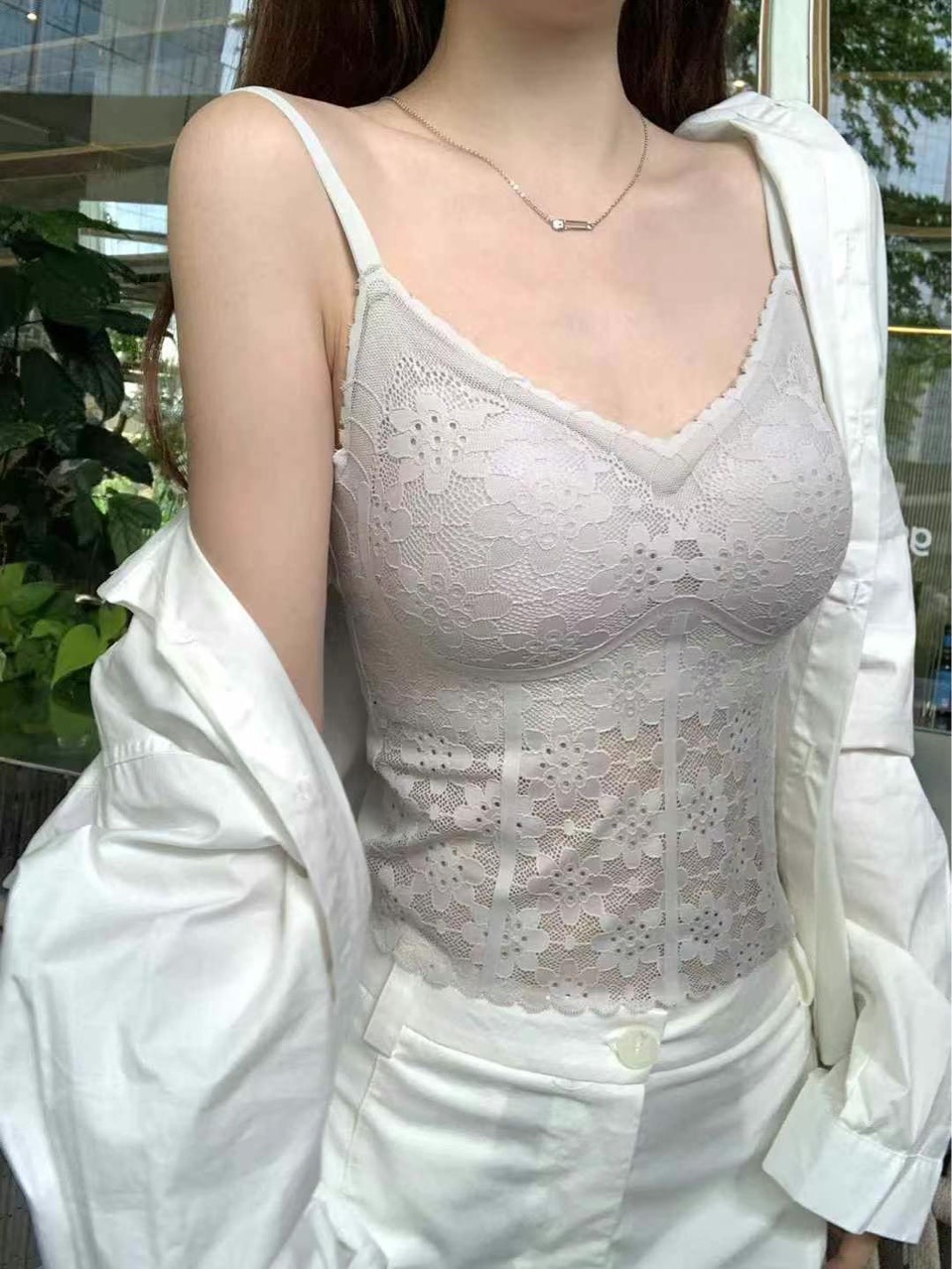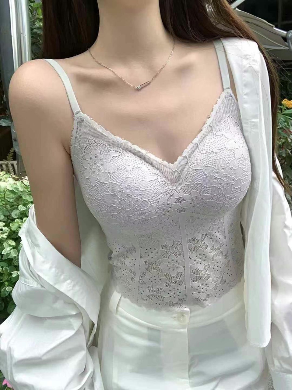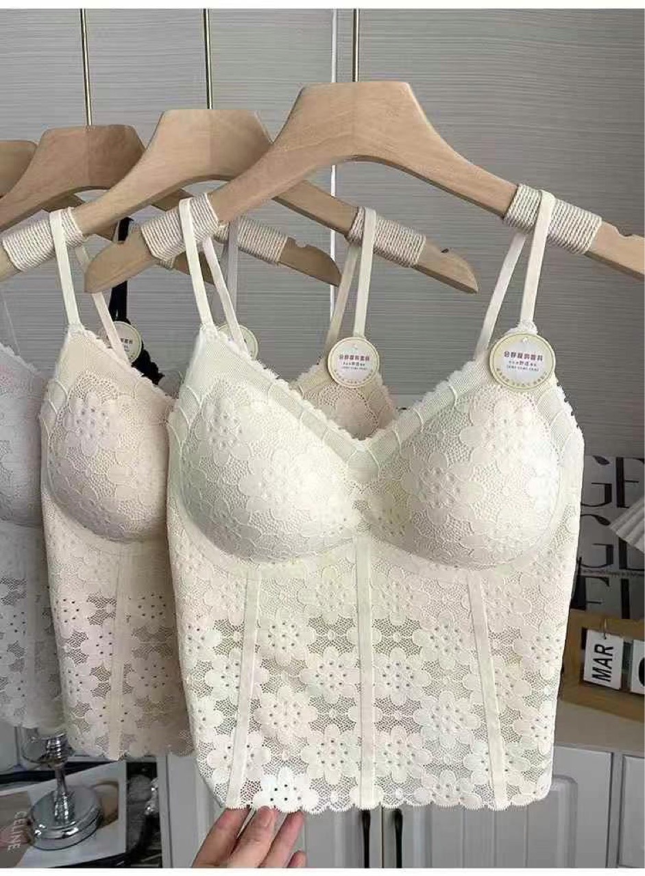 6213-1 프렌치 코트 스타일의 롱 프렌치 코트 스타일 하이엔드 레이스 도트 서스펜더 베스트 섹시한 브이넥 심리스 이너탑스토어 가기