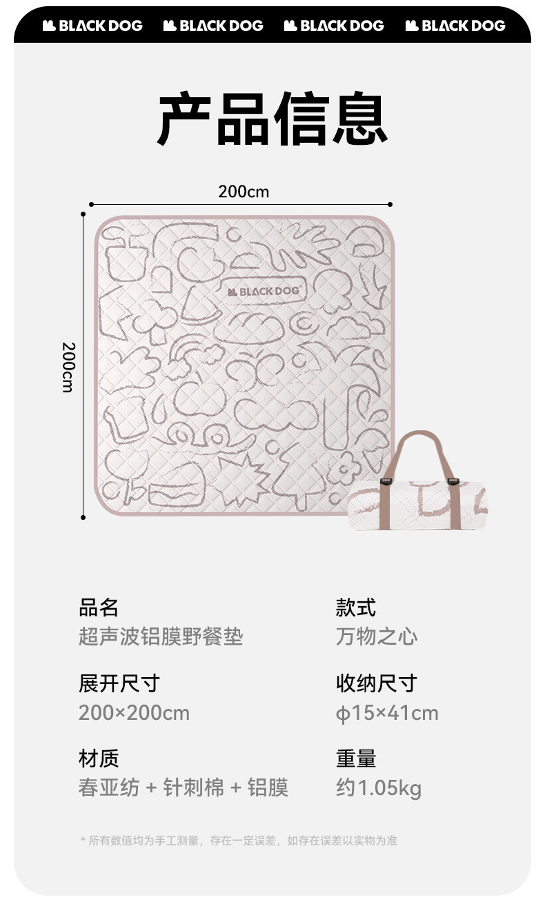 Blackdog 야외 초음파 알루미늄 필름 피크닉 매트 방습 매트 봄 나들이 매트 방수 공원 바닥 매트