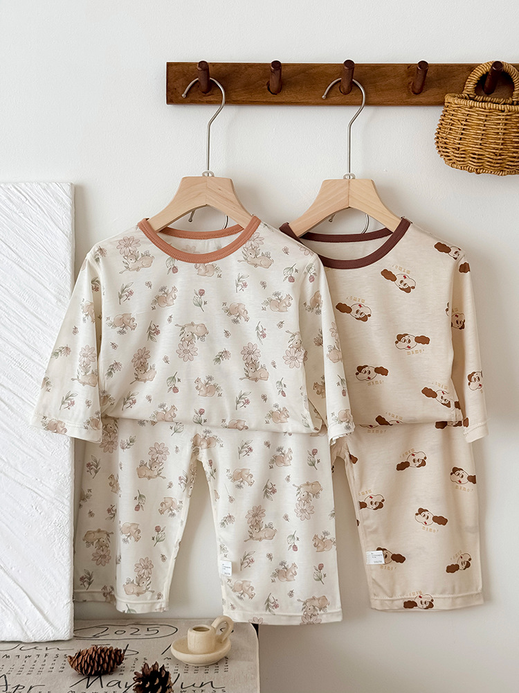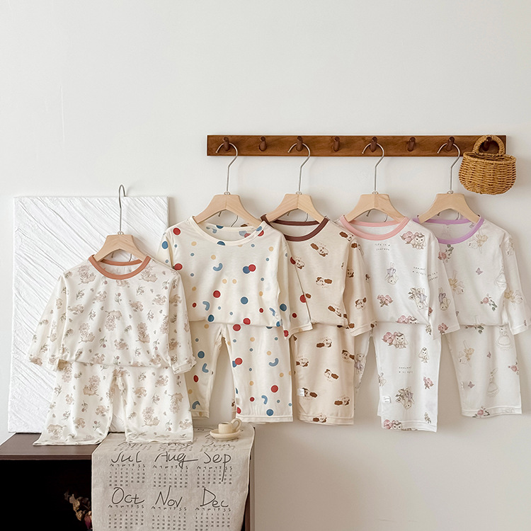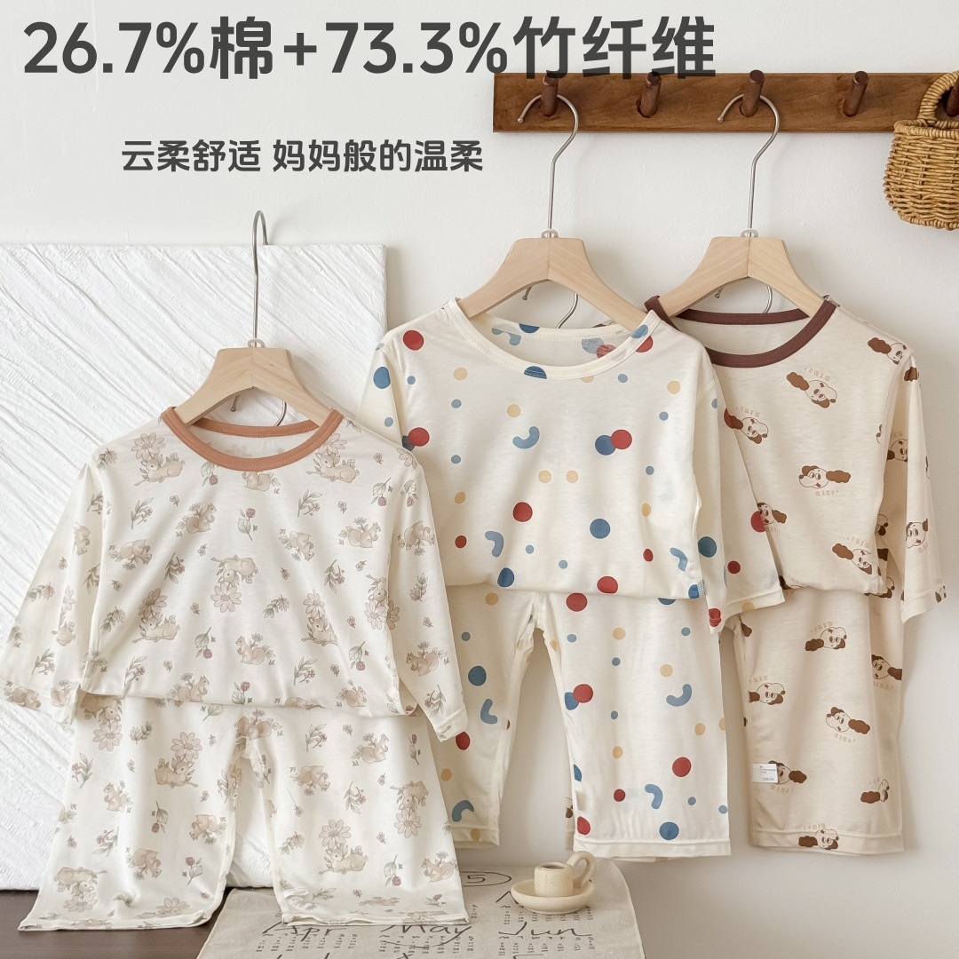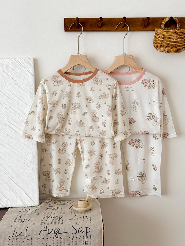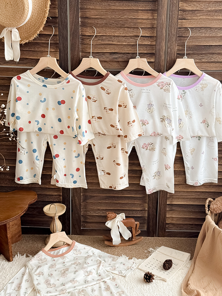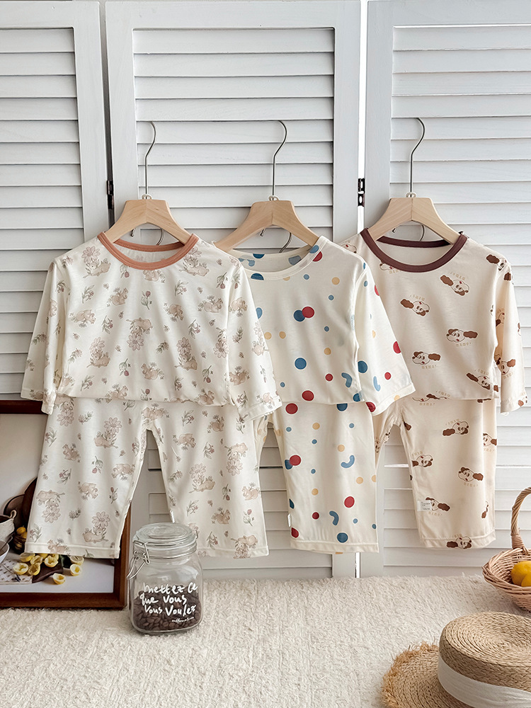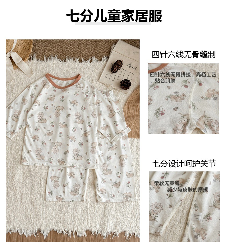 어린이 잠옷 홈 세트 여름 얇은 통기성 7 점 슬리브 아기 소년 소녀 에어컨 옷 어린이 잠옷스토어 가기