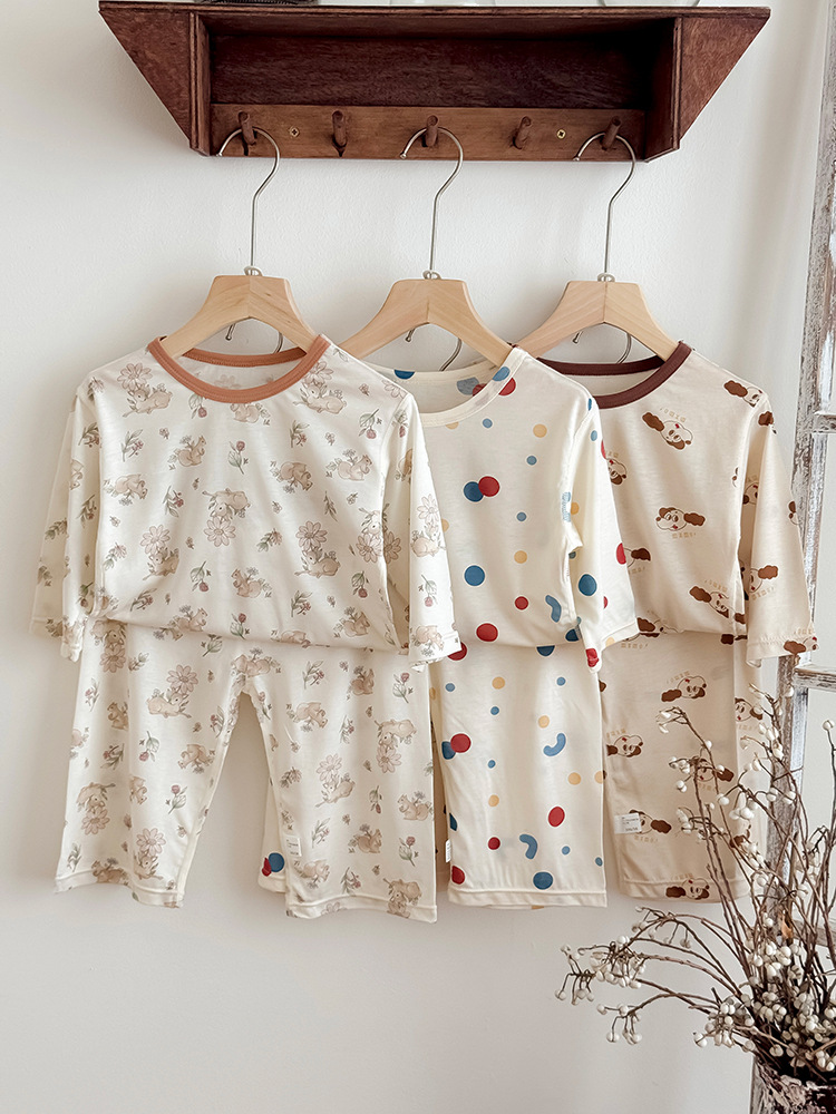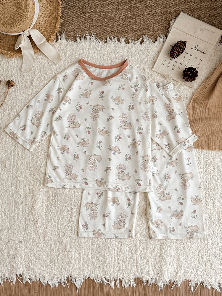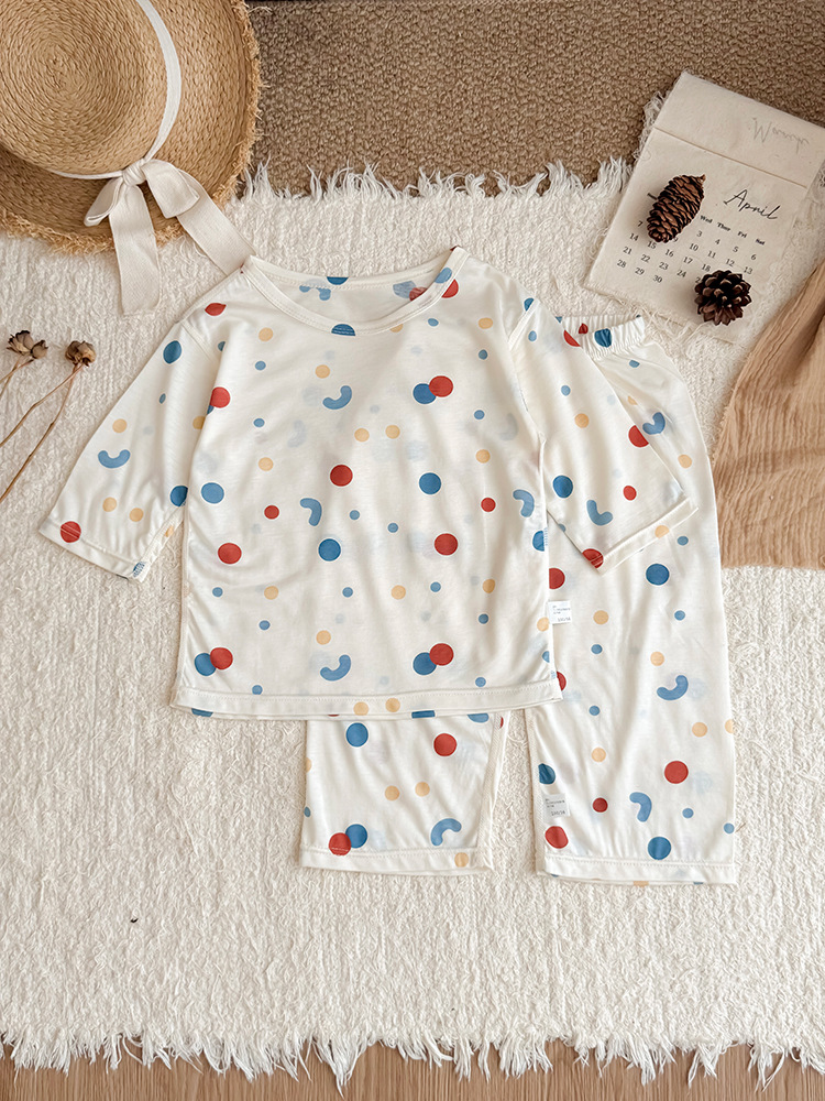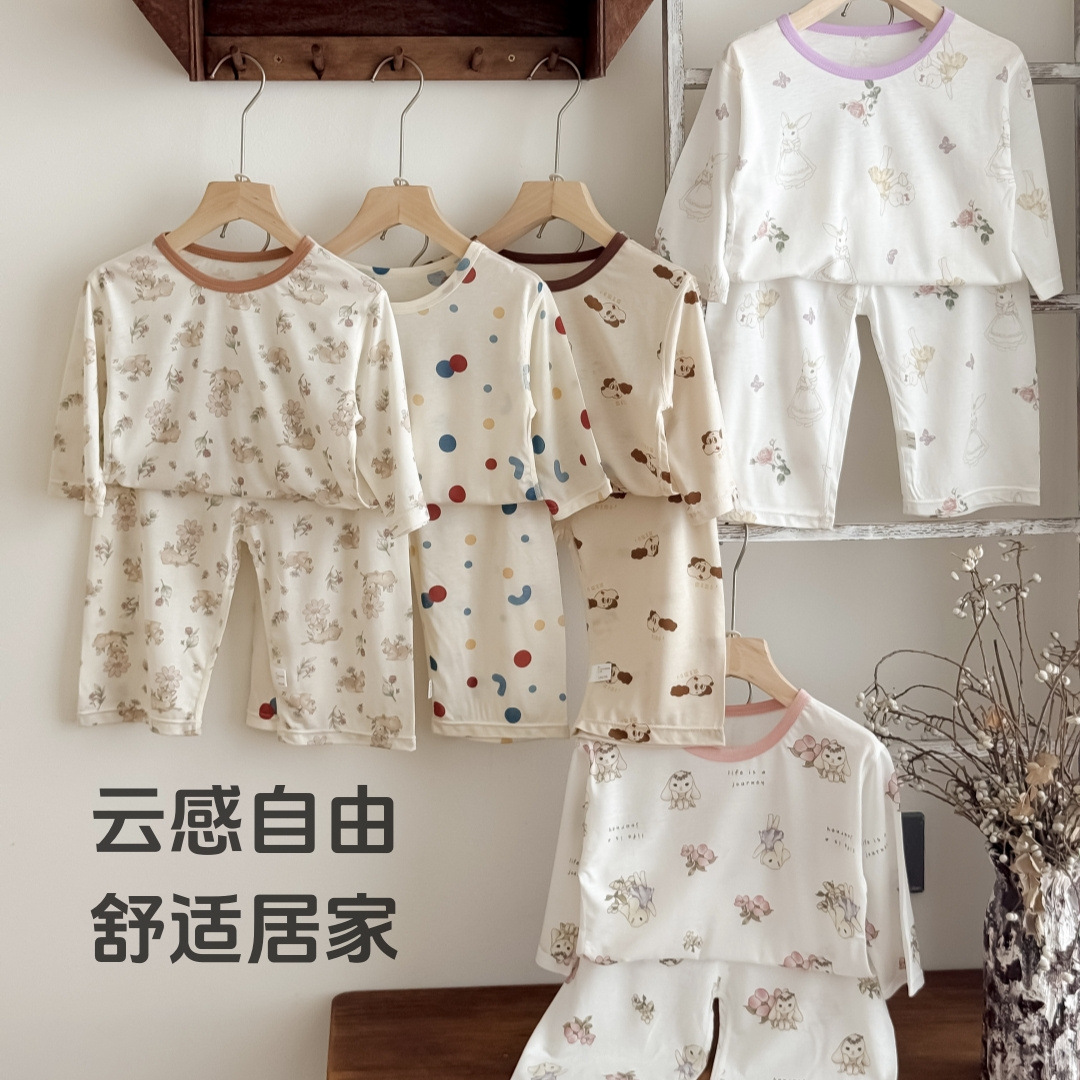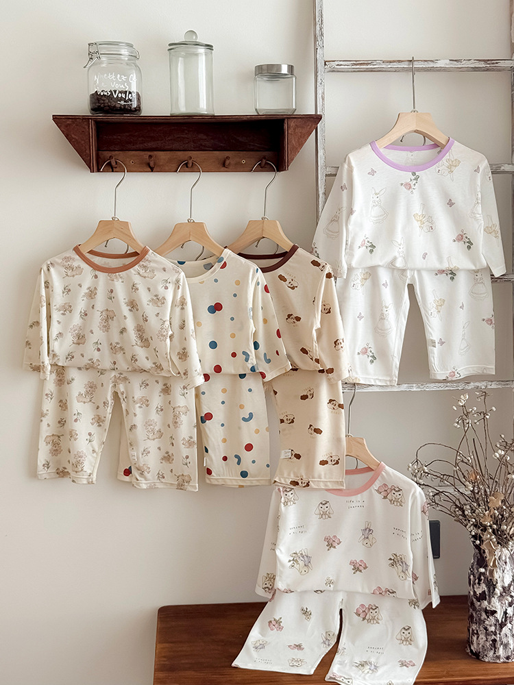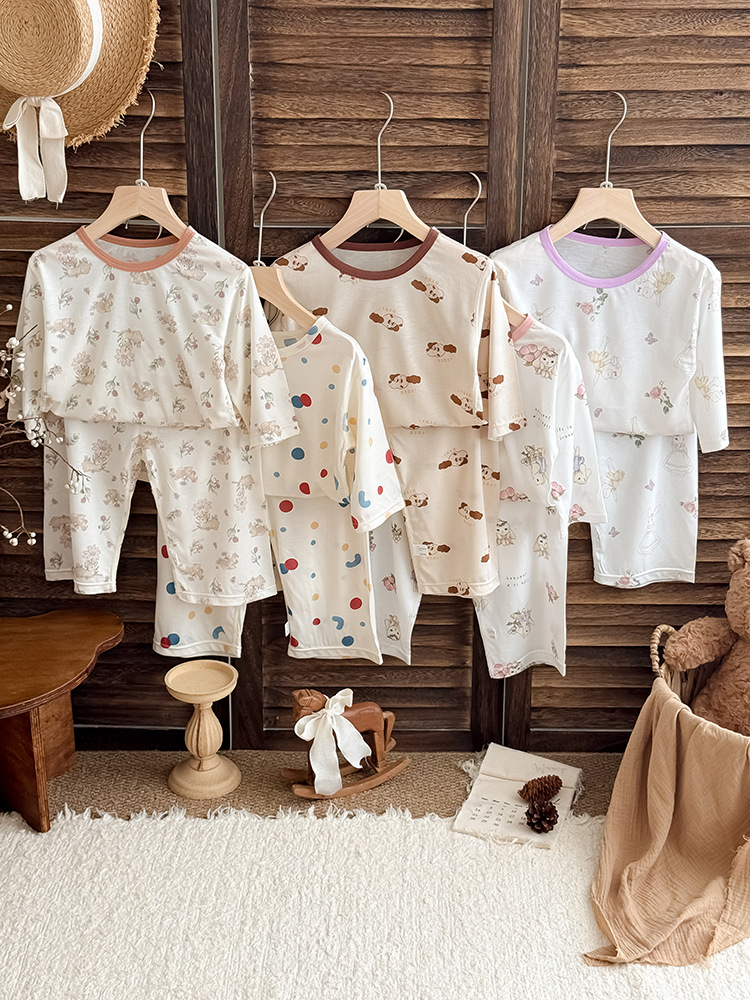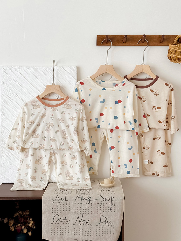 어린이 잠옷 홈 세트 여름 얇은 통기성 7 점 슬리브 아기 소년 소녀 에어컨 옷 어린이 잠옷스토어 가기