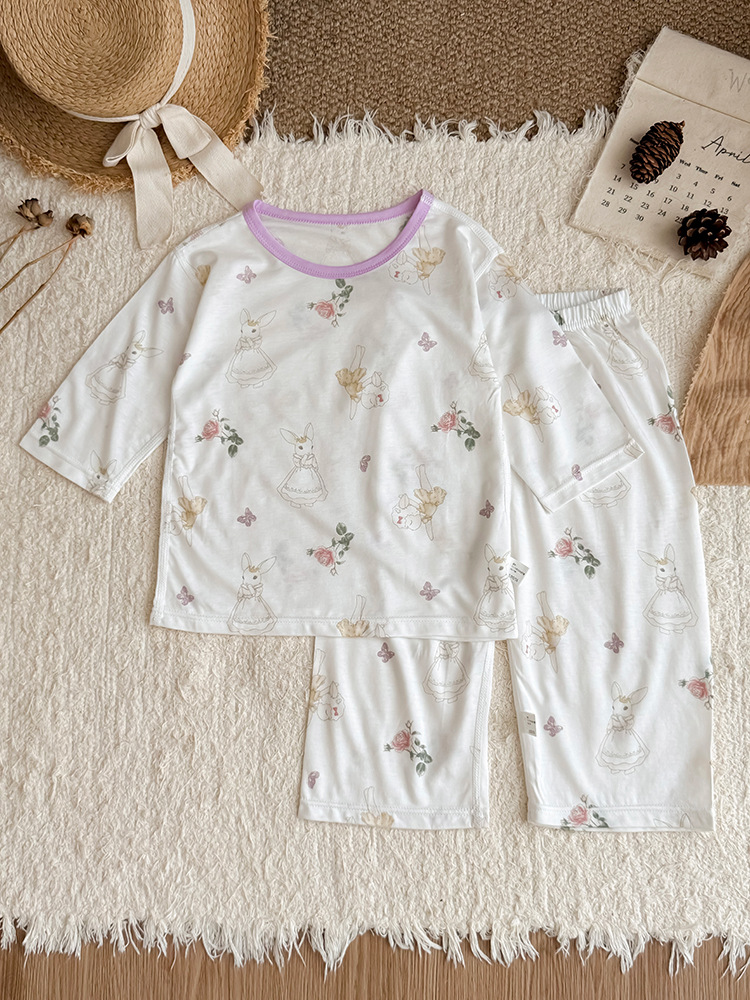 어린이 잠옷 홈 세트 여름 얇은 통기성 7 점 슬리브 아기 소년 소녀 에어컨 옷 어린이 잠옷