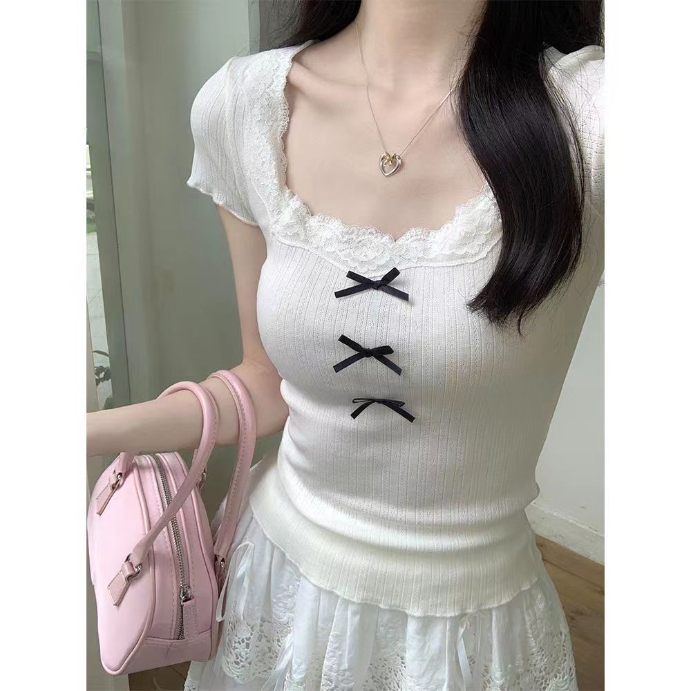 발레 스타일 레이스 바느질 반팔 티셔츠 여성용 여름 Bm 순수한 욕망 작은 달콤한 스파이스 소녀 활 봄과 가을 탑