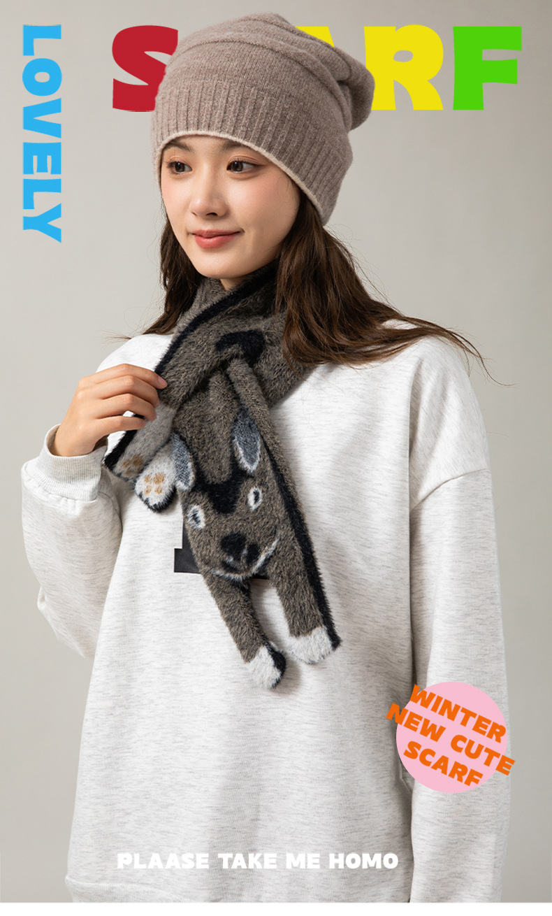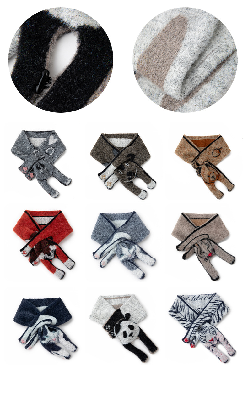 동물 프린트 모조 밍크 벨벳 스카프 일본 귀여운 어린이와 학생 두꺼운 벨벳 부드럽고 따뜻한 모피 칼라 스카프스토어 가기