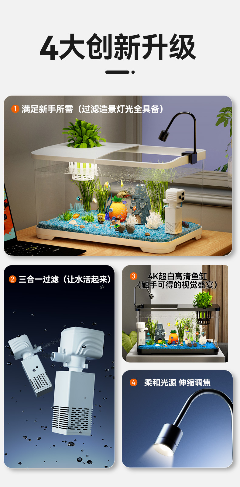 필터 산소 발생기 일체형 거실 가정용 조경이 포함된 수조 모조 유리 아크릴 데스크탑 관상용 소형 수조스토어 가기