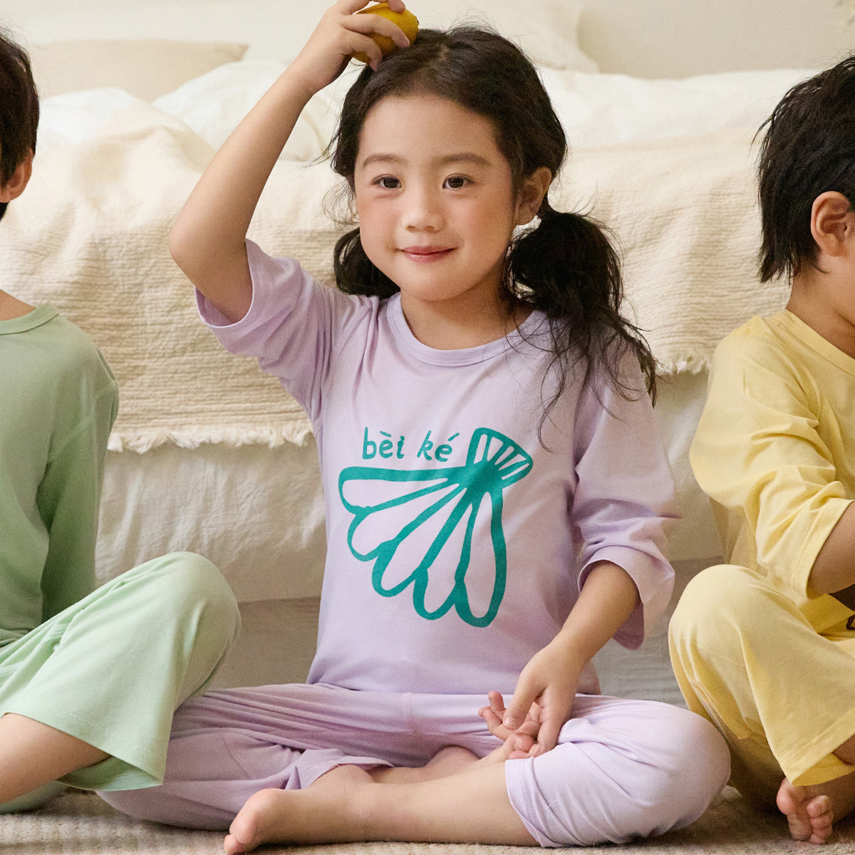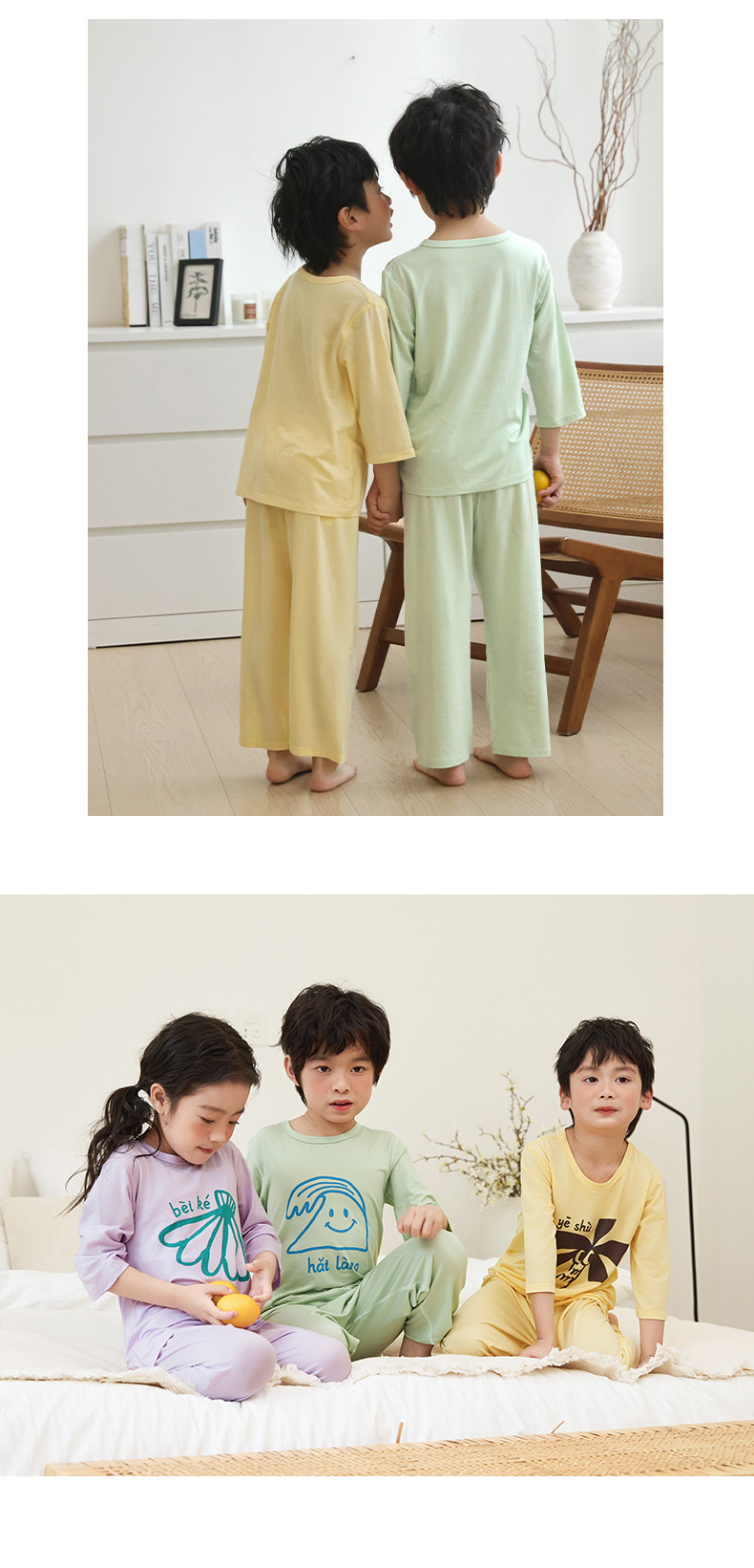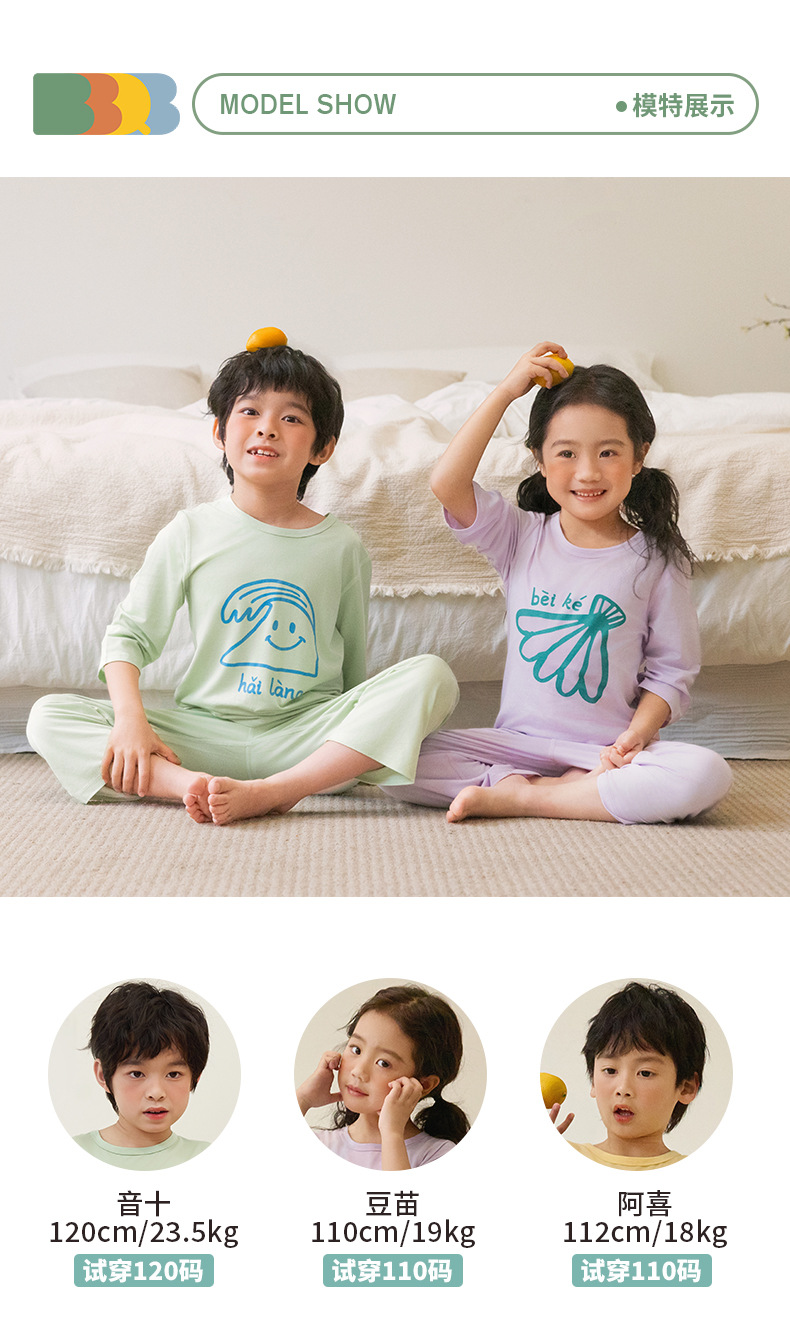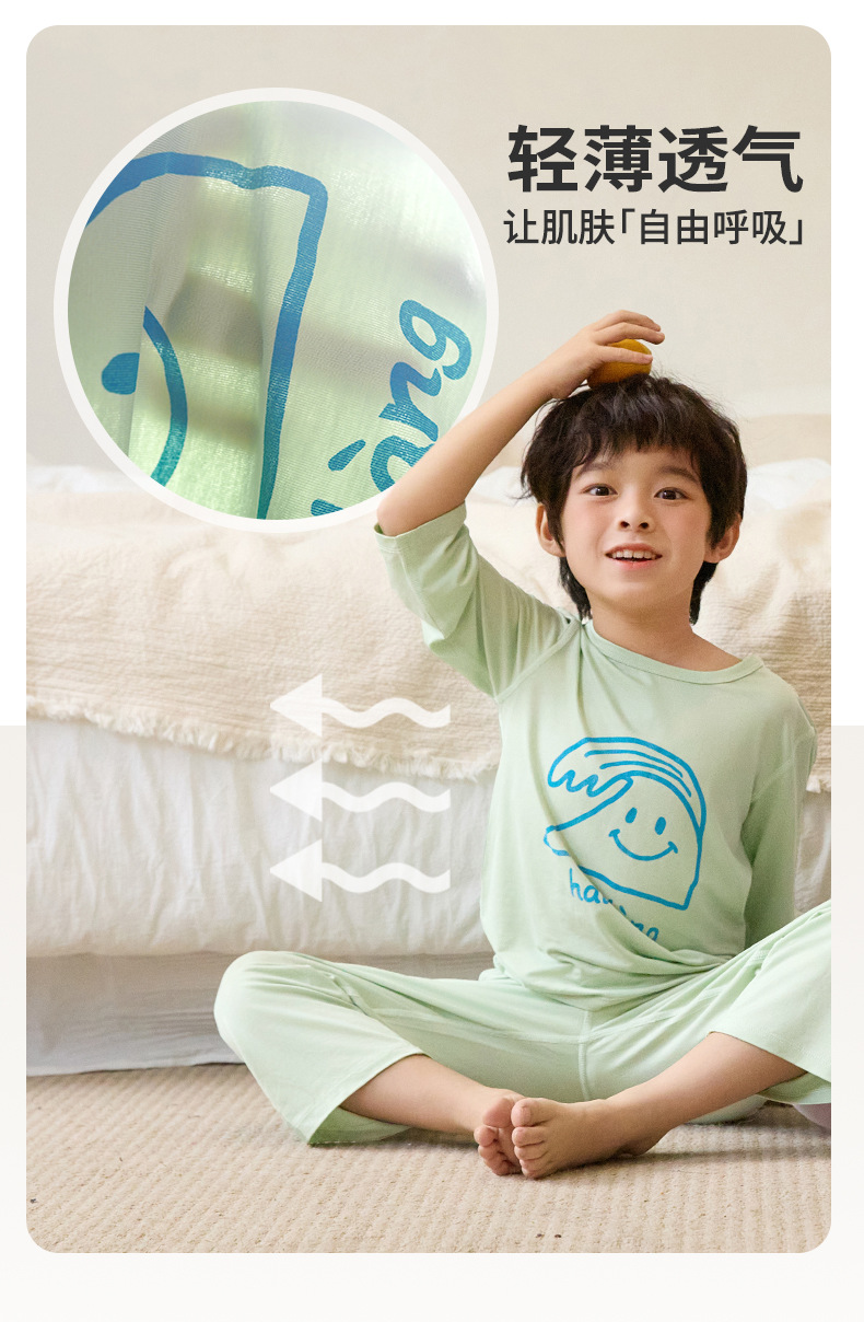 BBQB 어린이 여름 홈 옷 얇은 에어컨 옷 소년 아이스 실크 세븐 슬리브 Lyocell 뼈없는 세트 소녀스토어 가기