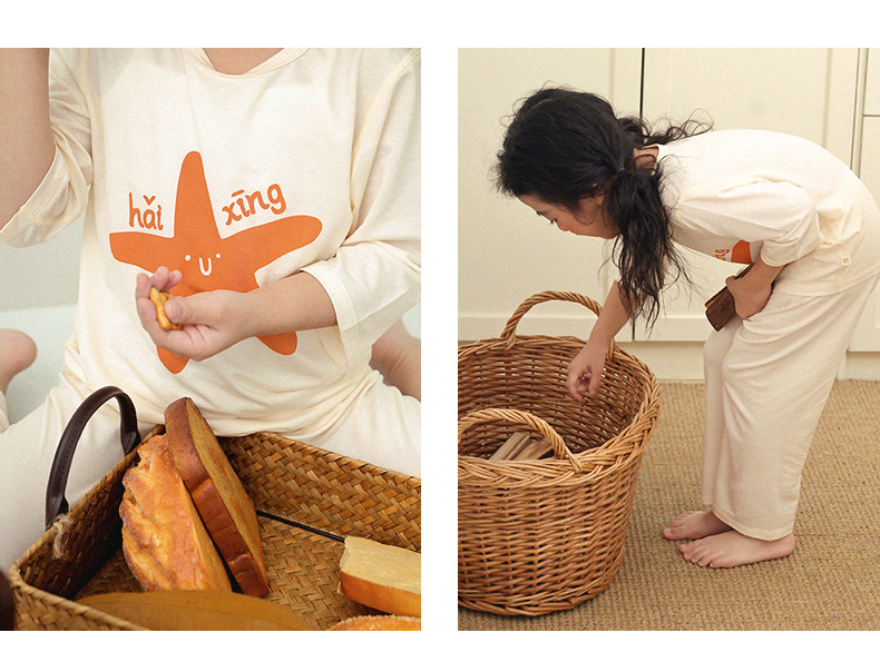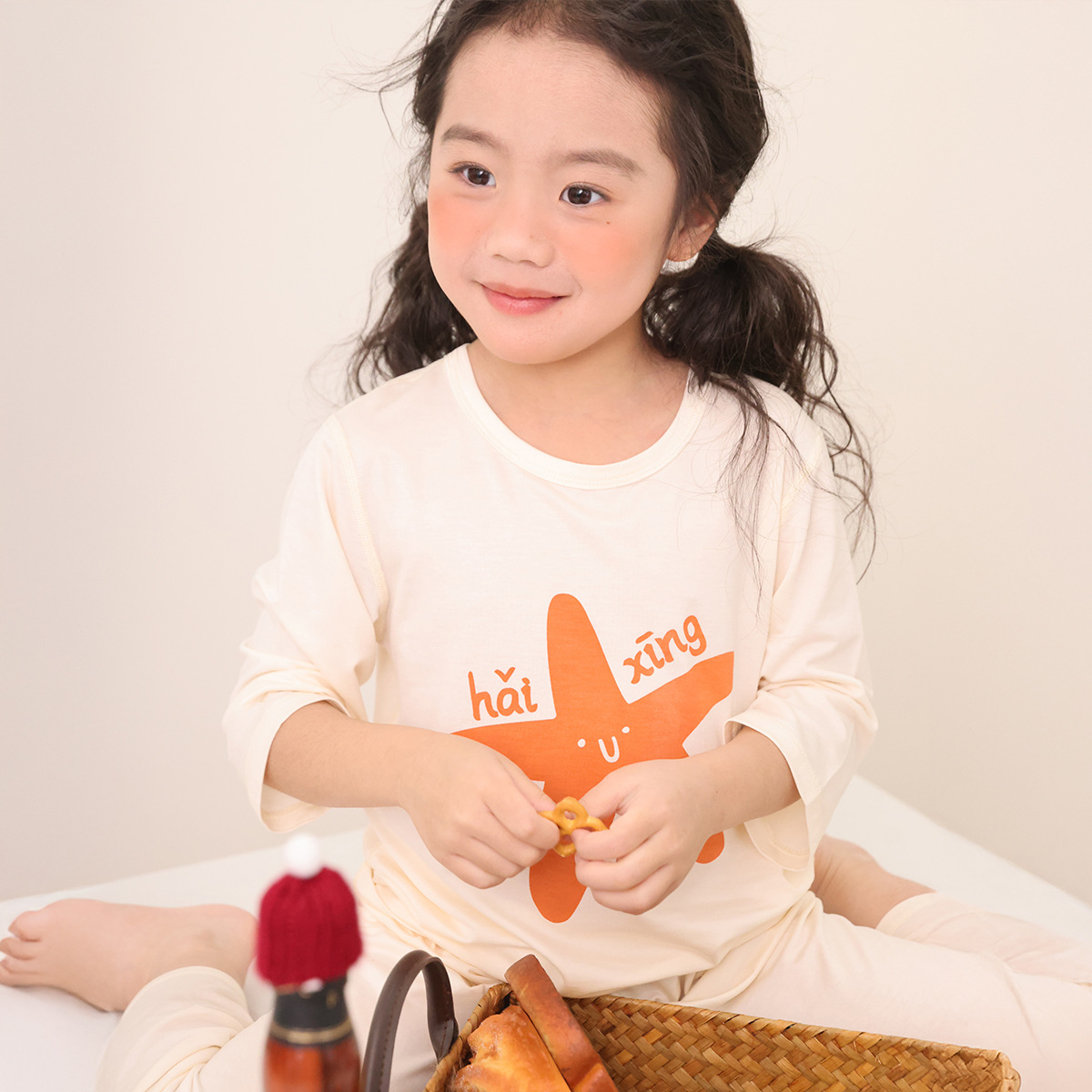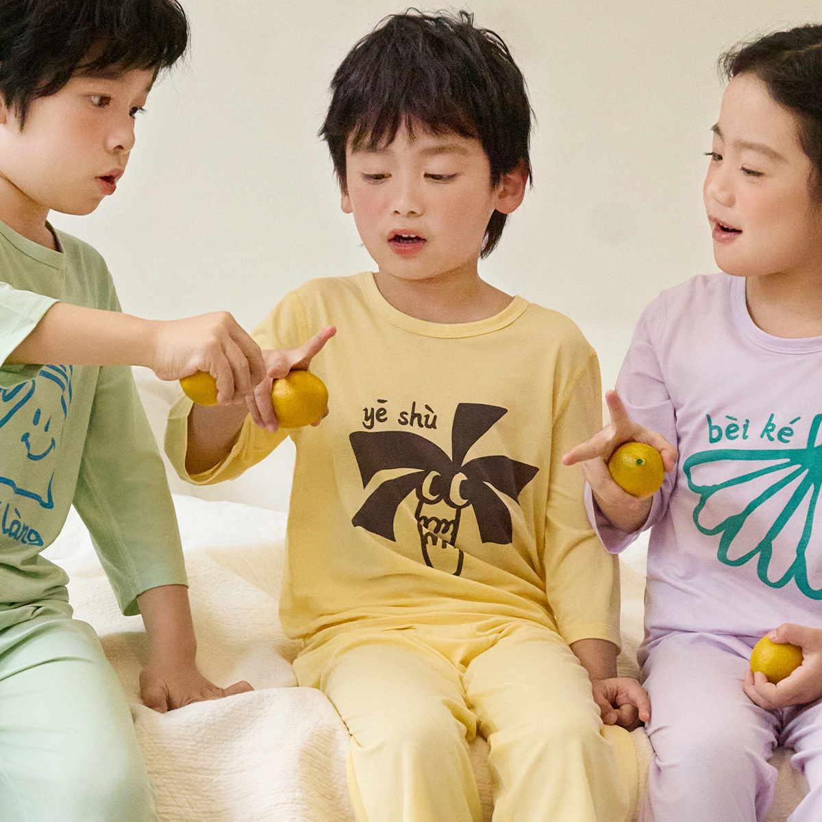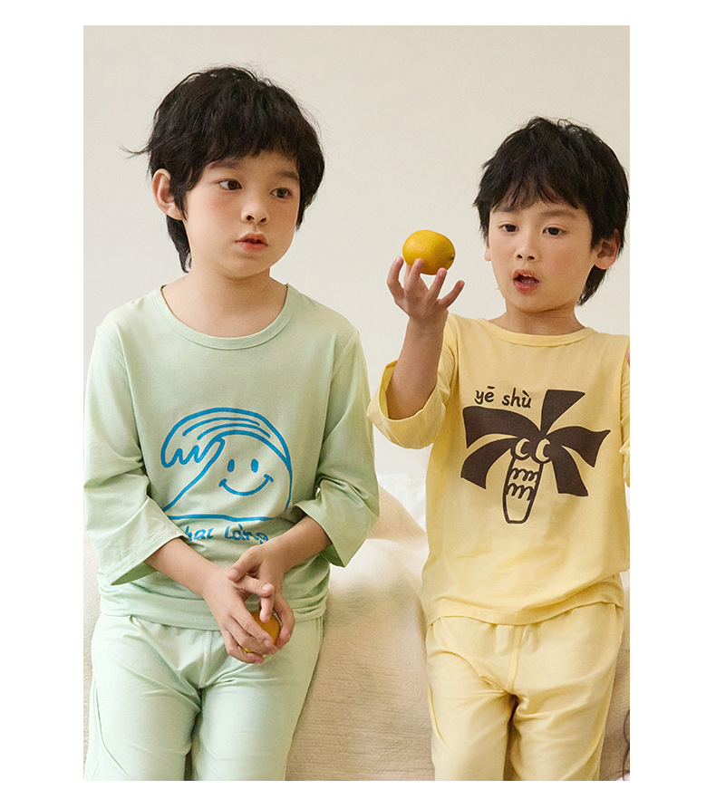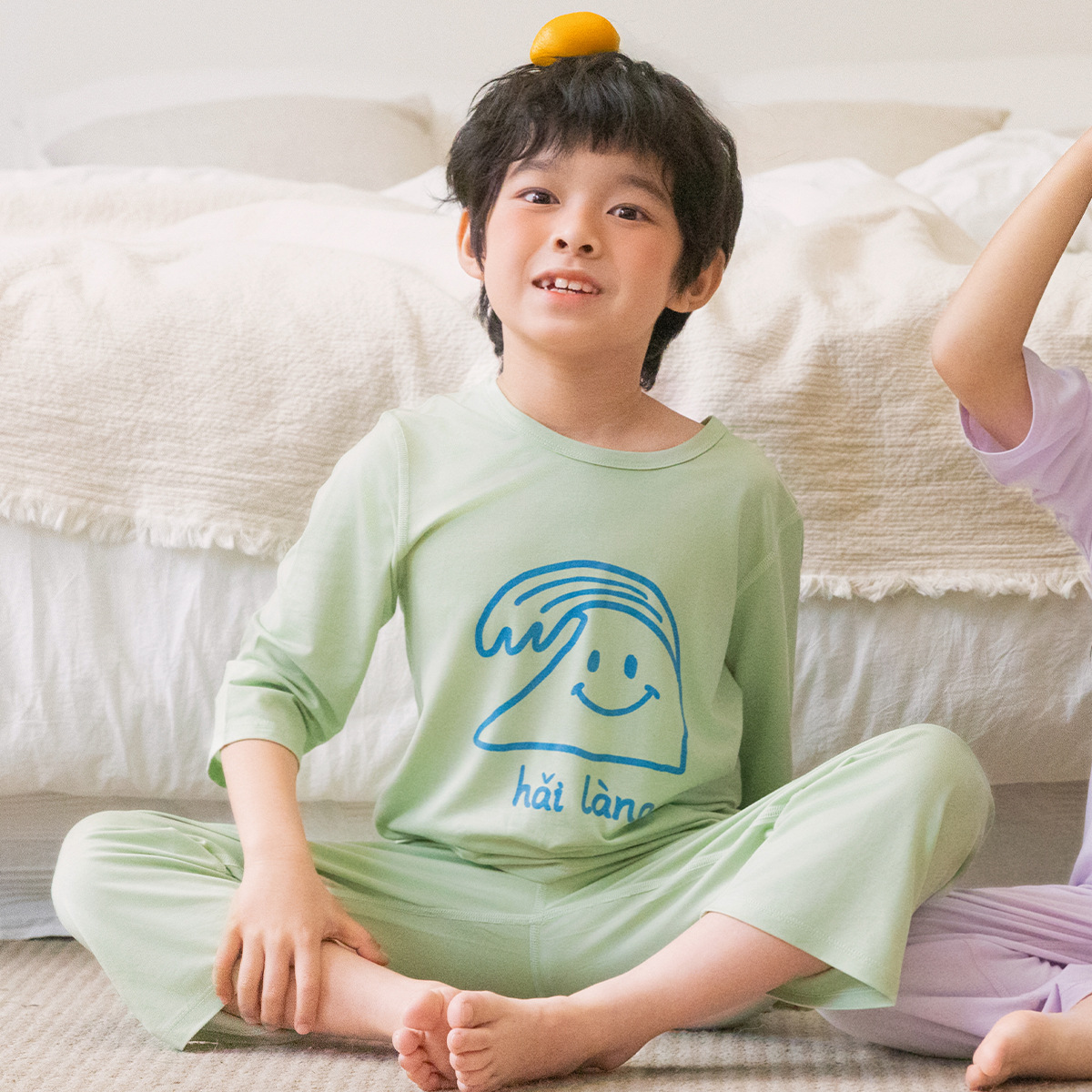 BBQB 어린이 여름 홈 옷 얇은 에어컨 옷 소년 아이스 실크 세븐 슬리브 Lyocell 뼈없는 세트 소녀스토어 가기