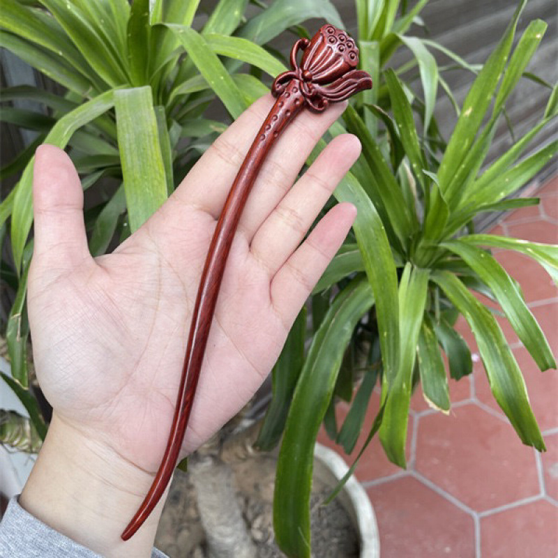 여성용 소잎 붉은 백단 꽃 머리핀, 다용도 한복 나무 머리핀, 긴 머리 잠금 머리핀 제조업체