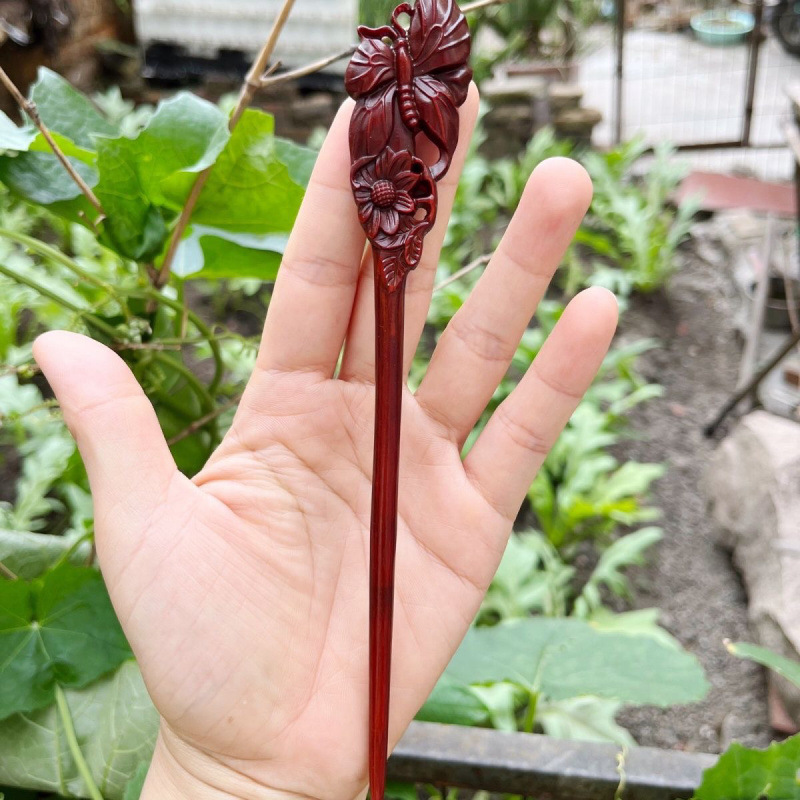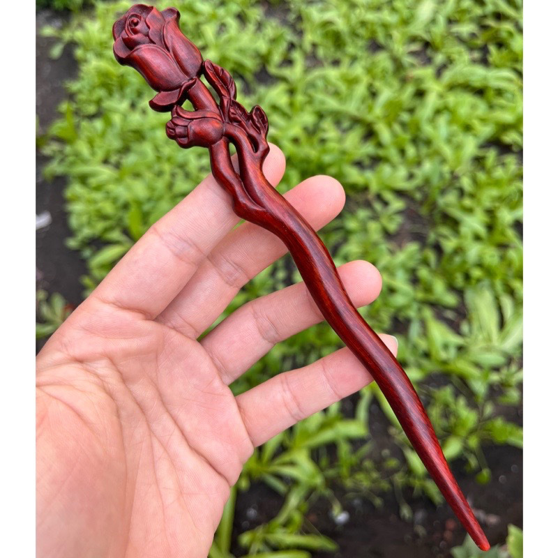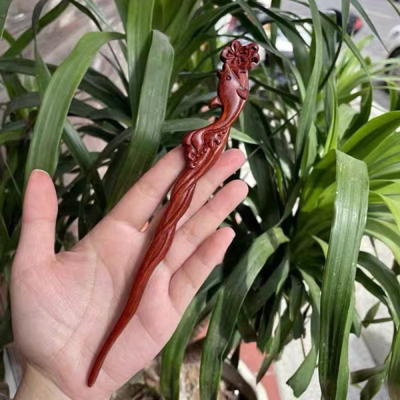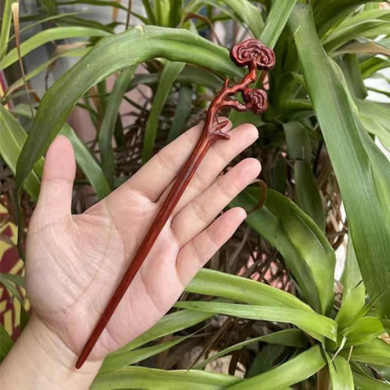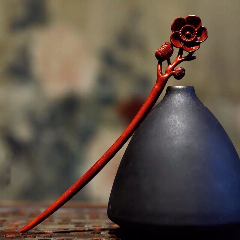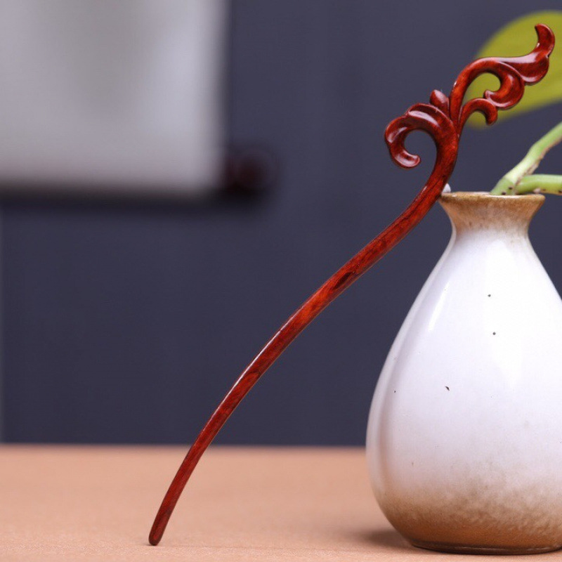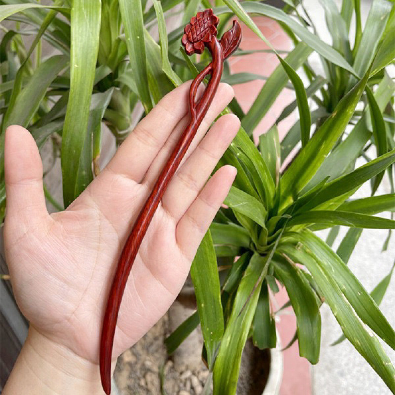 여성용 소잎 붉은 백단 꽃 머리핀, 다용도 한복 나무 머리핀, 긴 머리 잠금 머리핀 제조업체스토어 가기