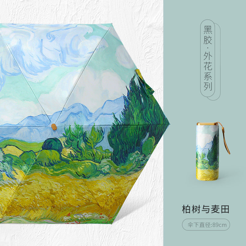 • 유화우산 [외부 금색 접착제 내부 패턴] 편백나무와 밀밭 - 초경량 및 편리함