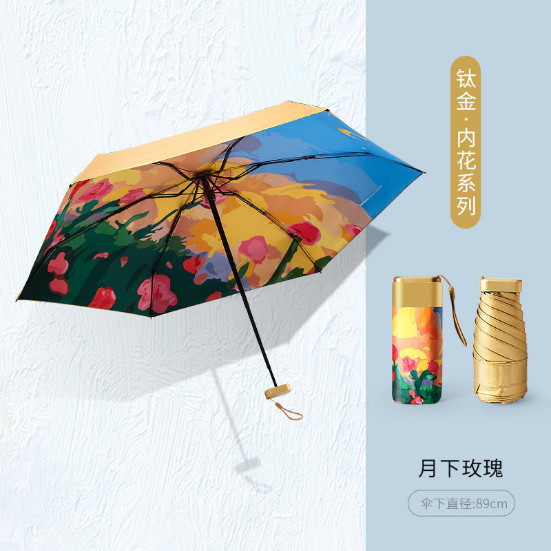 • 유화우산 [외부 금색 접착제 내부 패턴] 달 아래 장미 - 초경량 및 편리함
