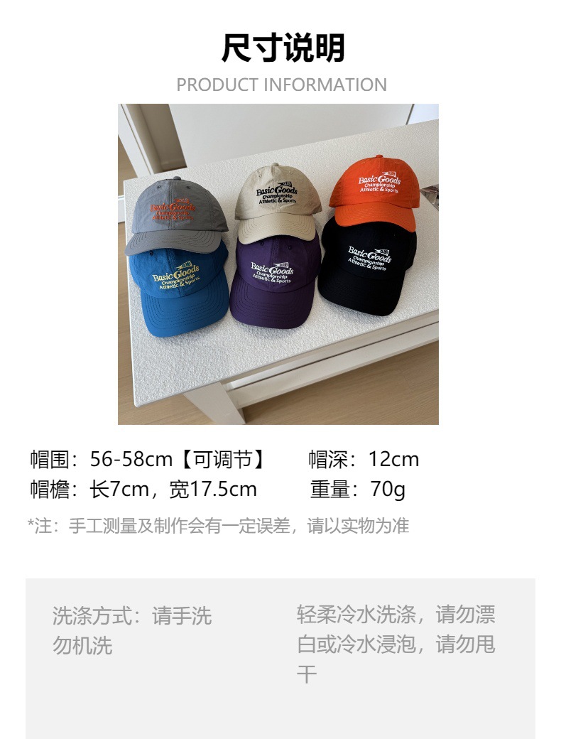 한국식 편지 자수 빠른 건조 야구 모자 여자 봄과 여름 여행 햇빛 유행 소프트 탑 유행 얇은 오리 혀 모자스토어 가기