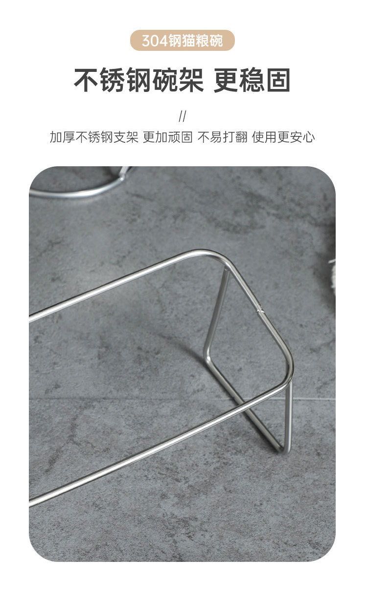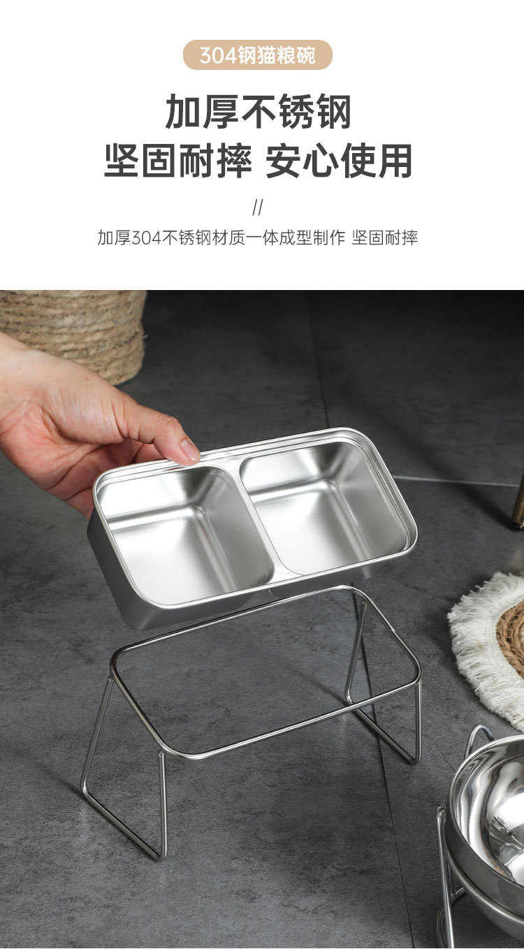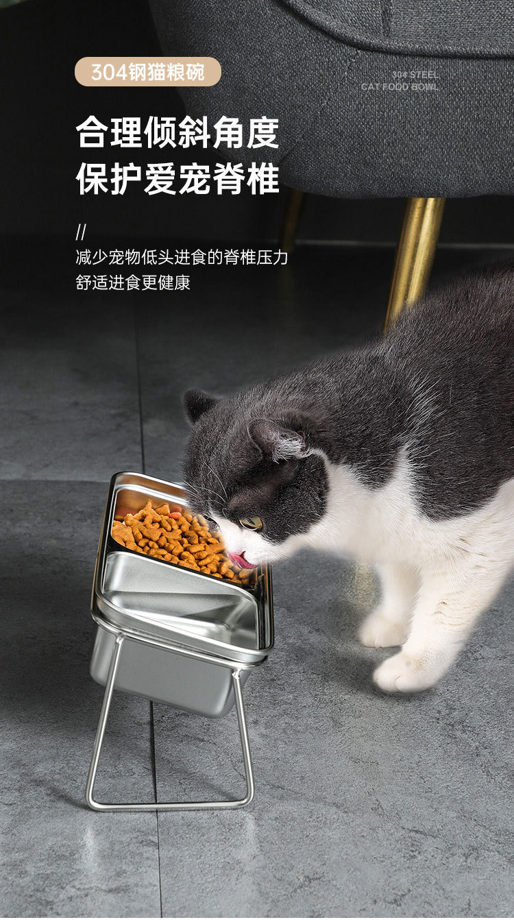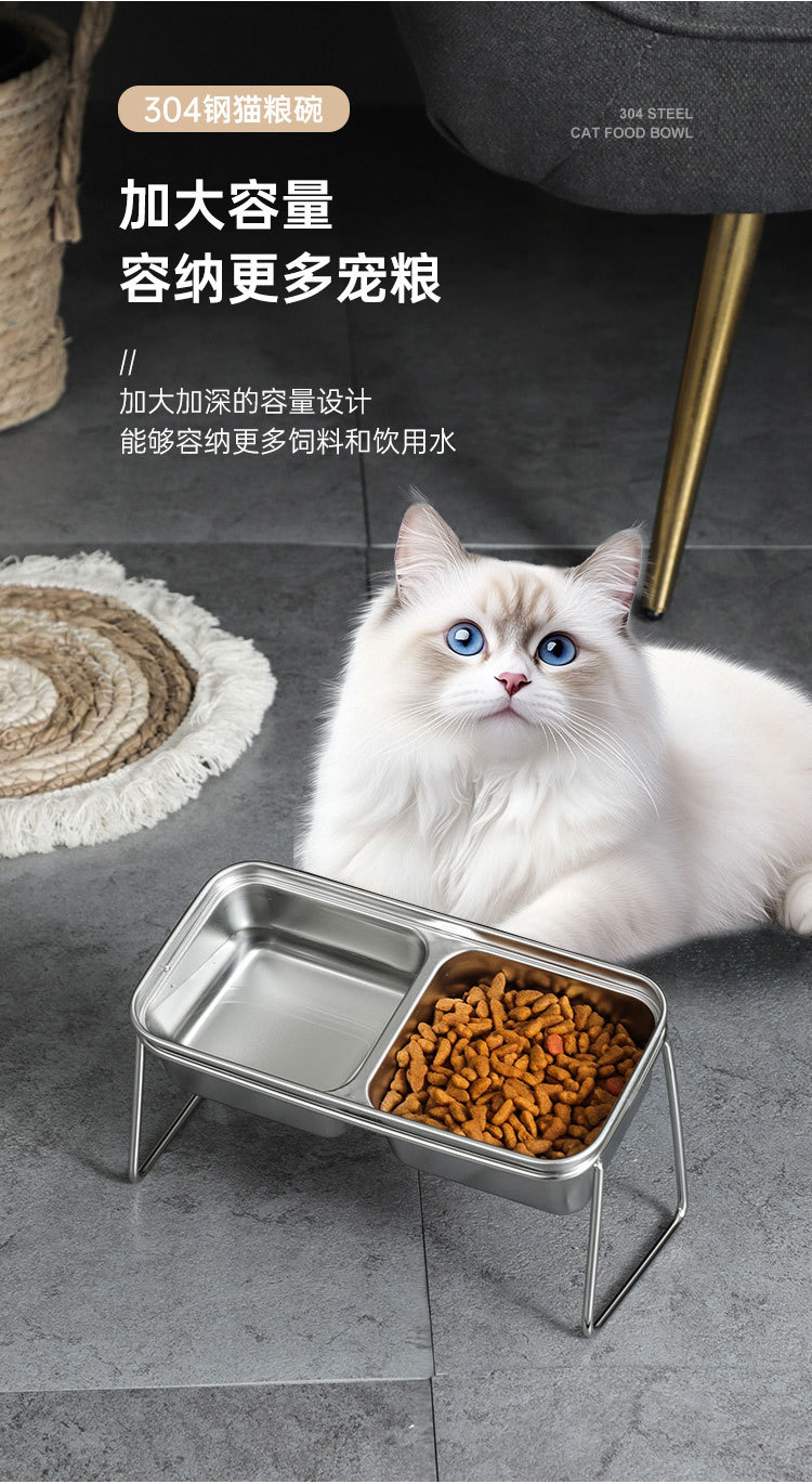 새로운 국경 간 304 스테인레스 스틸 고양이 사료 그릇, 이중 그릇, 식품 및 물 일체형 고양이 그릇, 목 보호 및 고양이 식기의 뒤집힘 방지