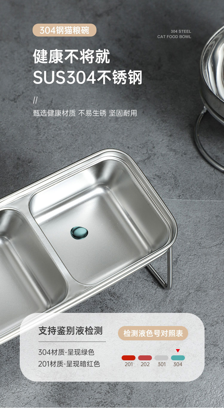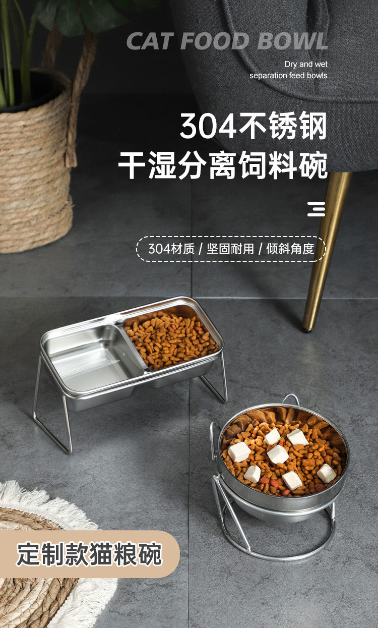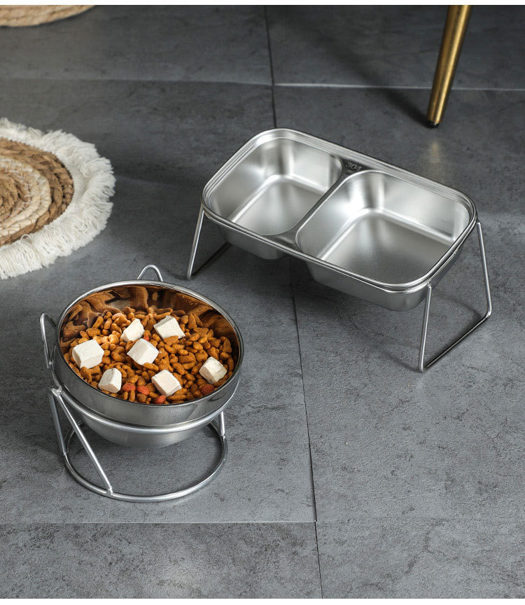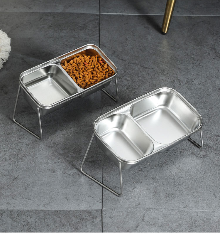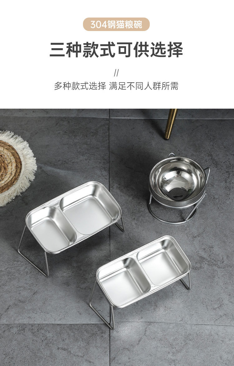 새로운 국경 간 304 스테인레스 스틸 고양이 사료 그릇, 이중 그릇, 식품 및 물 일체형 고양이 그릇, 목 보호 및 고양이 식기의 뒤집힘 방지