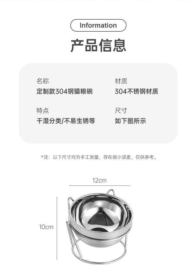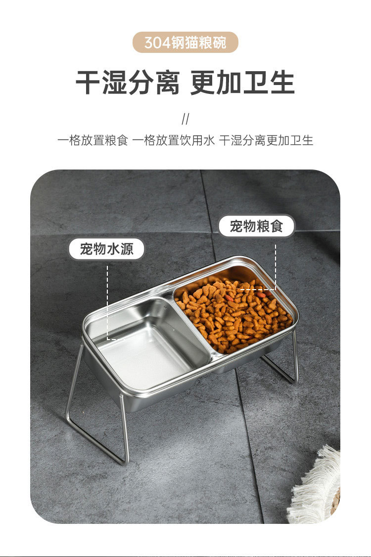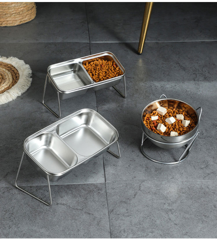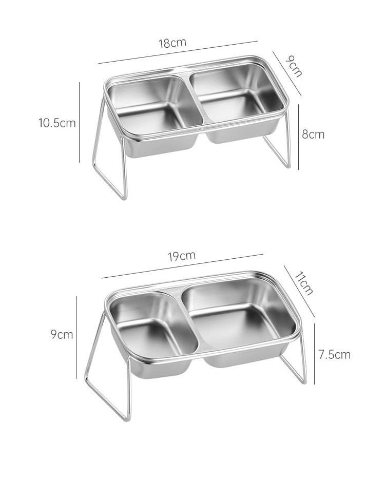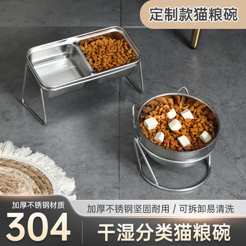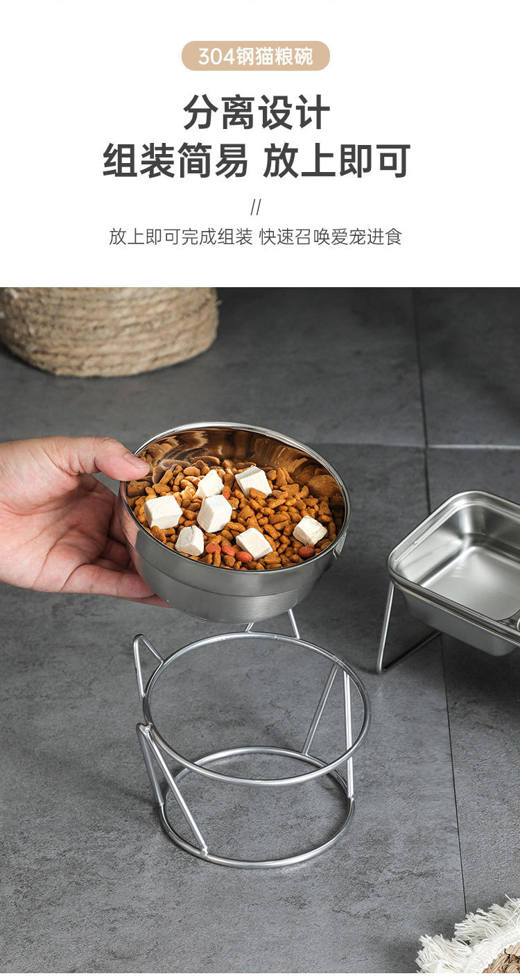 새로운 국경 간 304 스테인레스 스틸 고양이 사료 그릇, 이중 그릇, 식품 및 물 일체형 고양이 그릇, 목 보호 및 고양이 식기의 뒤집힘 방지