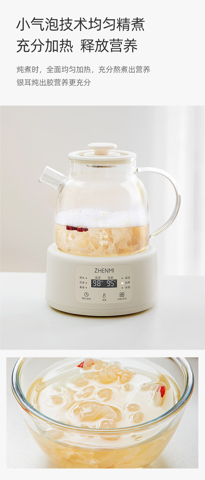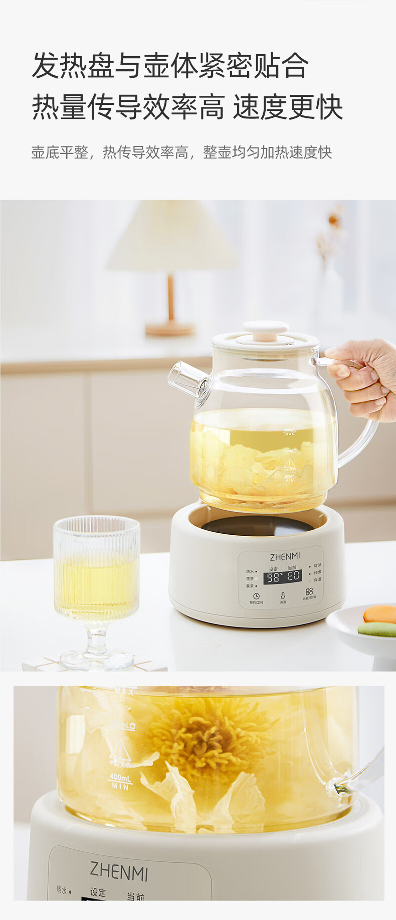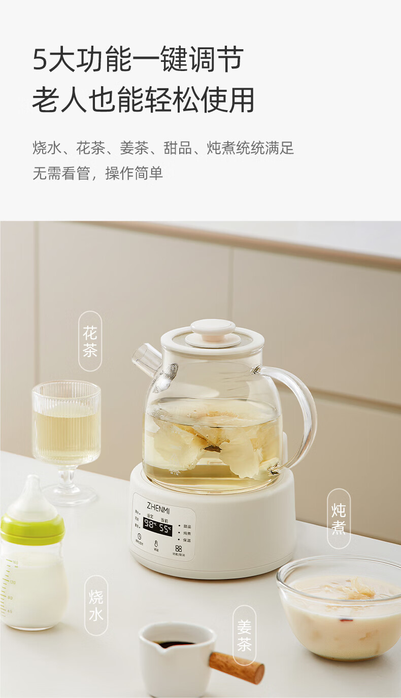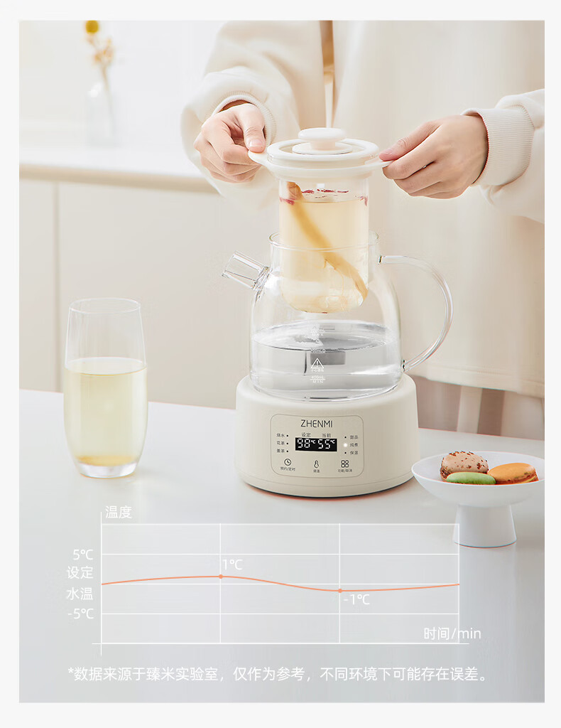 Zhenmi 건강 냄비 순수 유리 가정용 다기능 소규모 사무실 2025 새로운 차 제조기 물을 끓이는 온도 조절 냄비