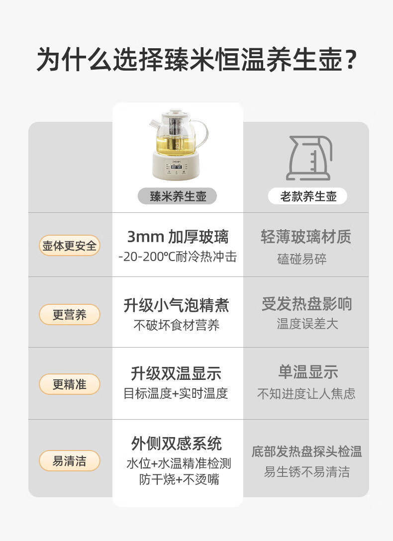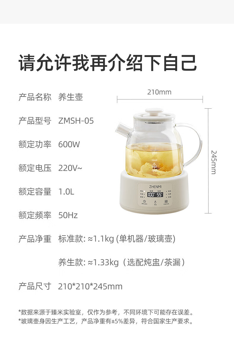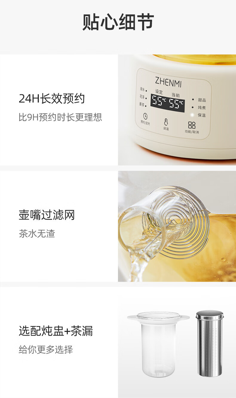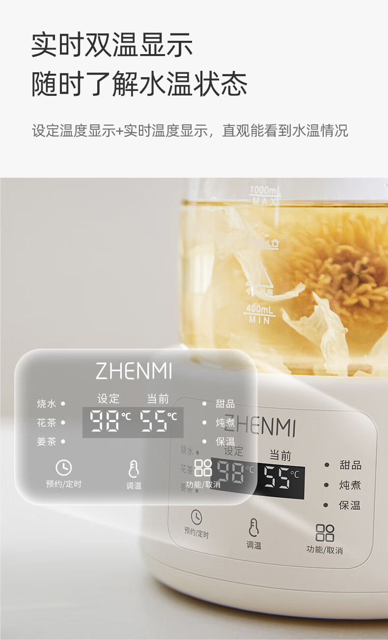 Zhenmi 건강 냄비 순수 유리 가정용 다기능 소규모 사무실 2025 새로운 차 제조기 물을 끓이는 온도 조절 냄비