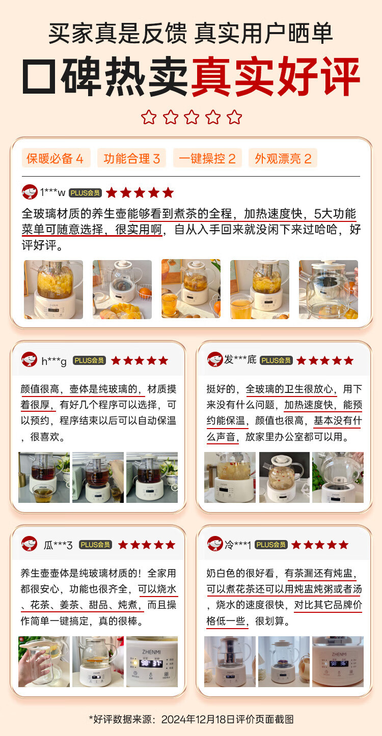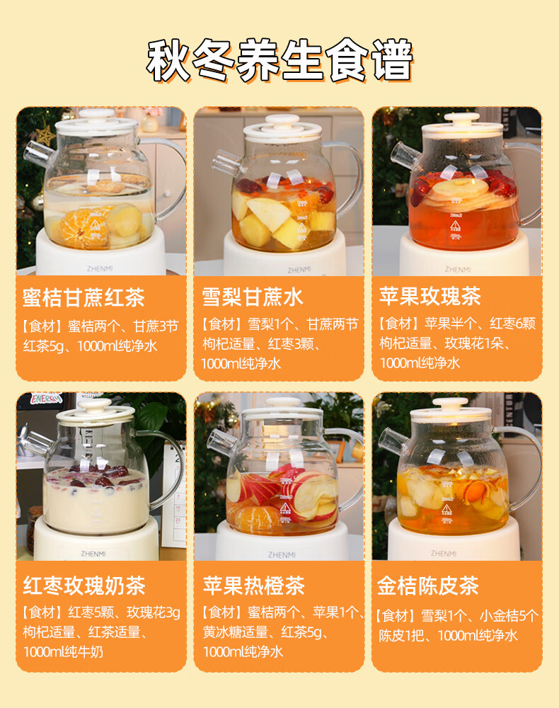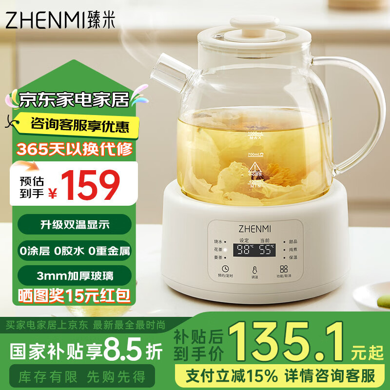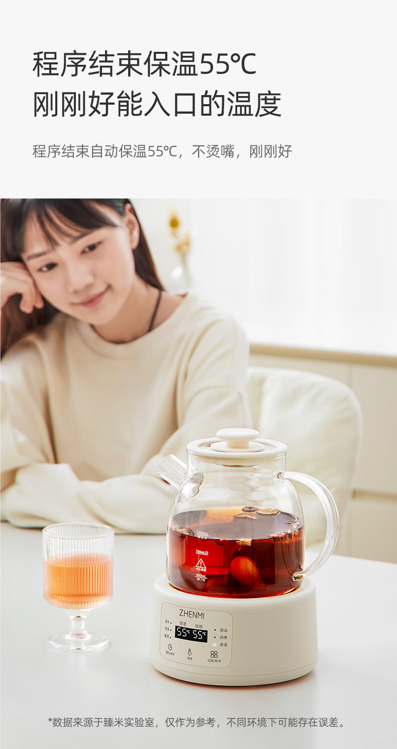 Zhenmi 건강 냄비 순수 유리 가정용 다기능 소규모 사무실 2025 새로운 차 제조기 물을 끓이는 온도 조절 냄비스토어 가기