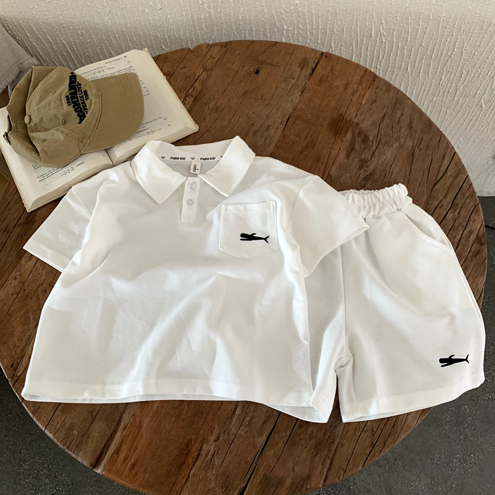 소년 여름 폴로 스포츠 세트 2025 새로운 어린이 잘 생긴 소년 Lel 티셔츠 5 점 바지 투피스 세트