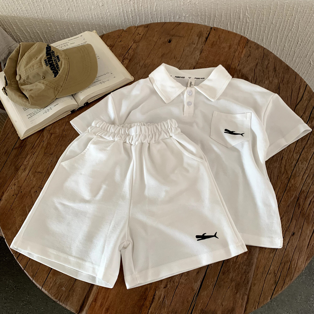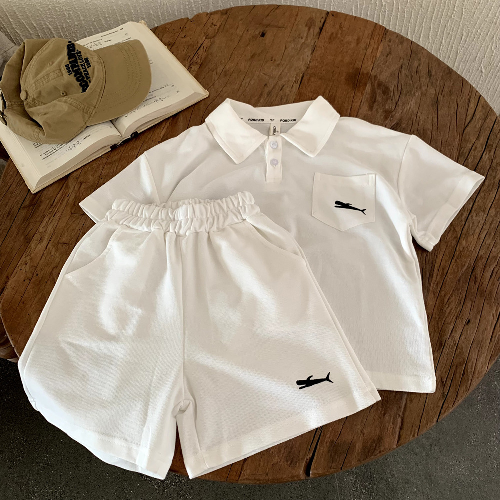 소년 여름 폴로 스포츠 세트 2025 새로운 어린이 잘 생긴 소년 Lel 티셔츠 5 점 바지 투피스 세트스토어 가기